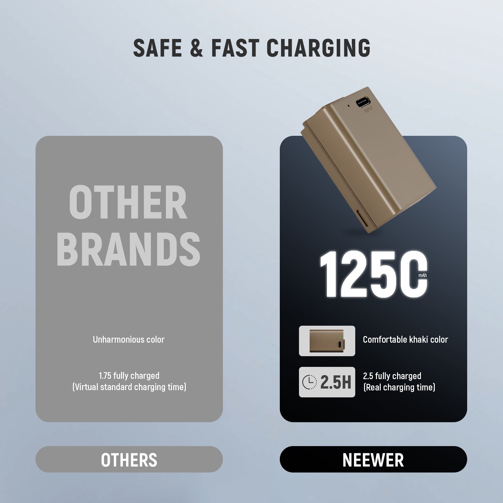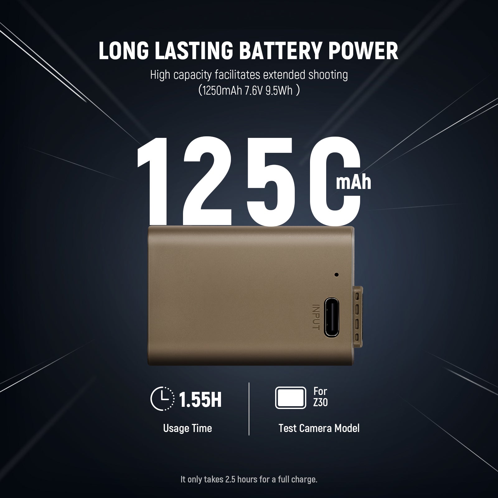 - Ricarica della batteria sicura e veloce : carica in sicurezza questa batteria da 1250 mAh al 100% in 2,5 ore utilizzando un caricatore da muro USB da 5 V 2 A (non incluso). Nota: la ricarica rapida PD non è supportata