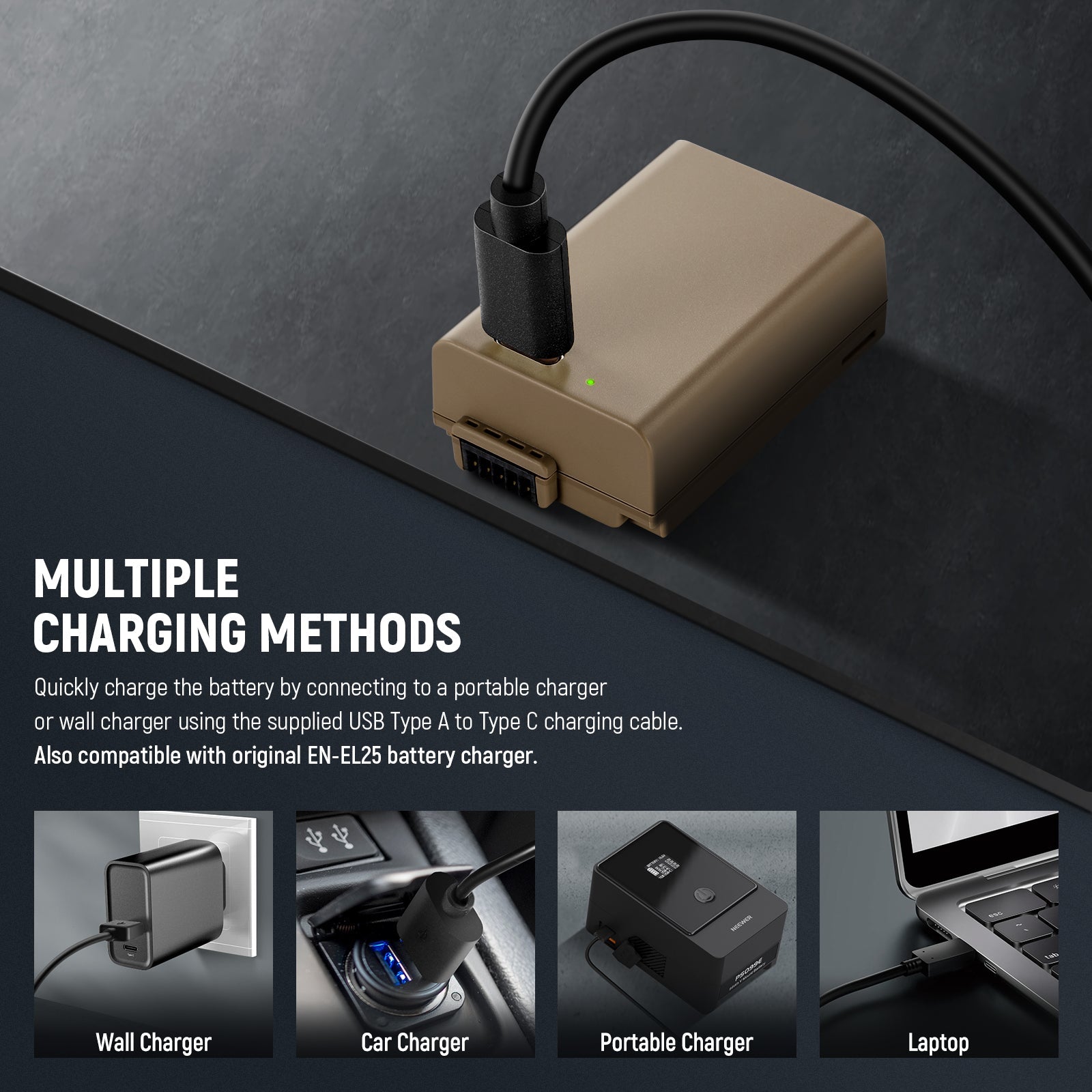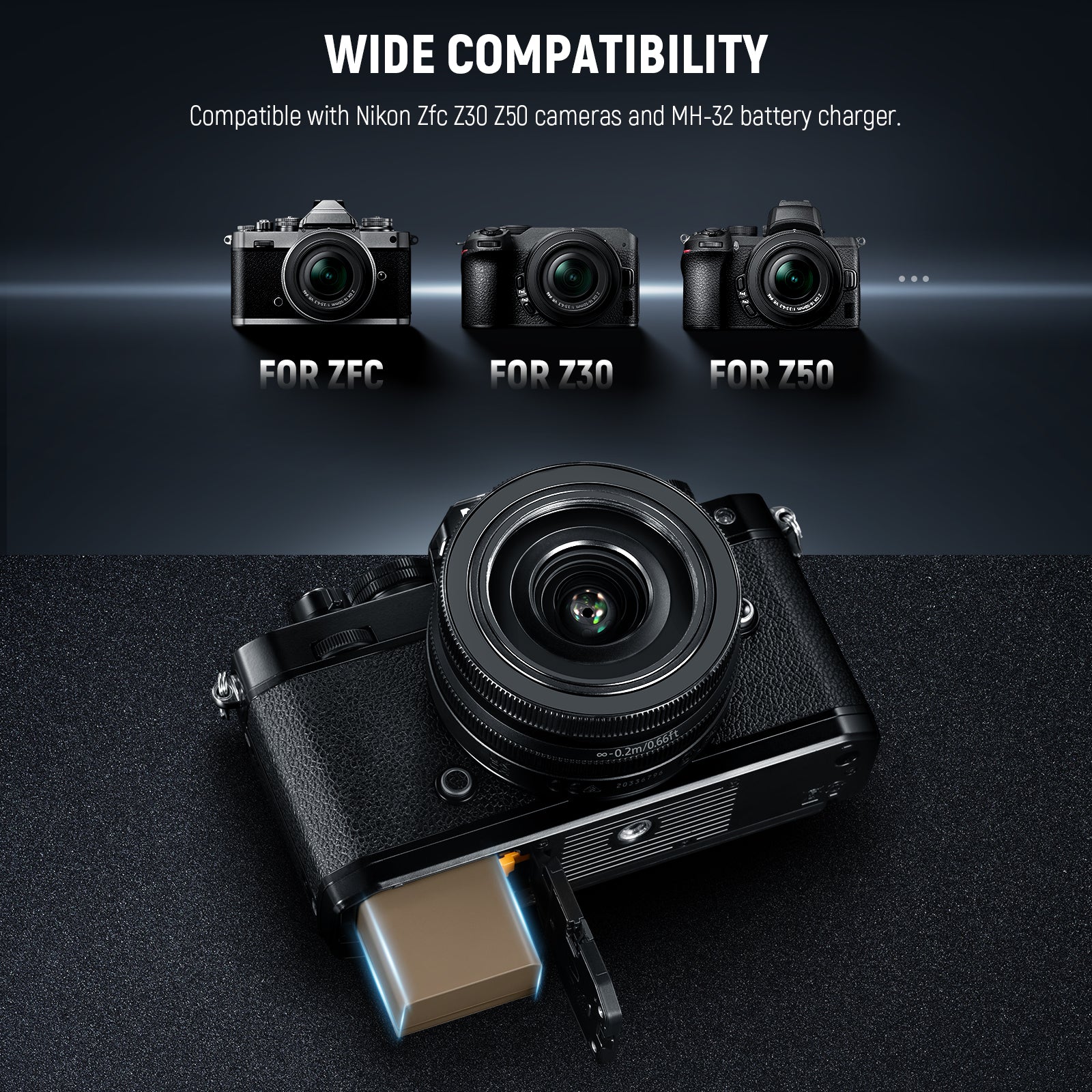 - Batteria sostitutiva per Nikon EN-EL25 - Questa EN-EL25 è completamente compatibile con le fotocamere Nikon Zfc Z30 Z50 e il caricabatterie MH-32