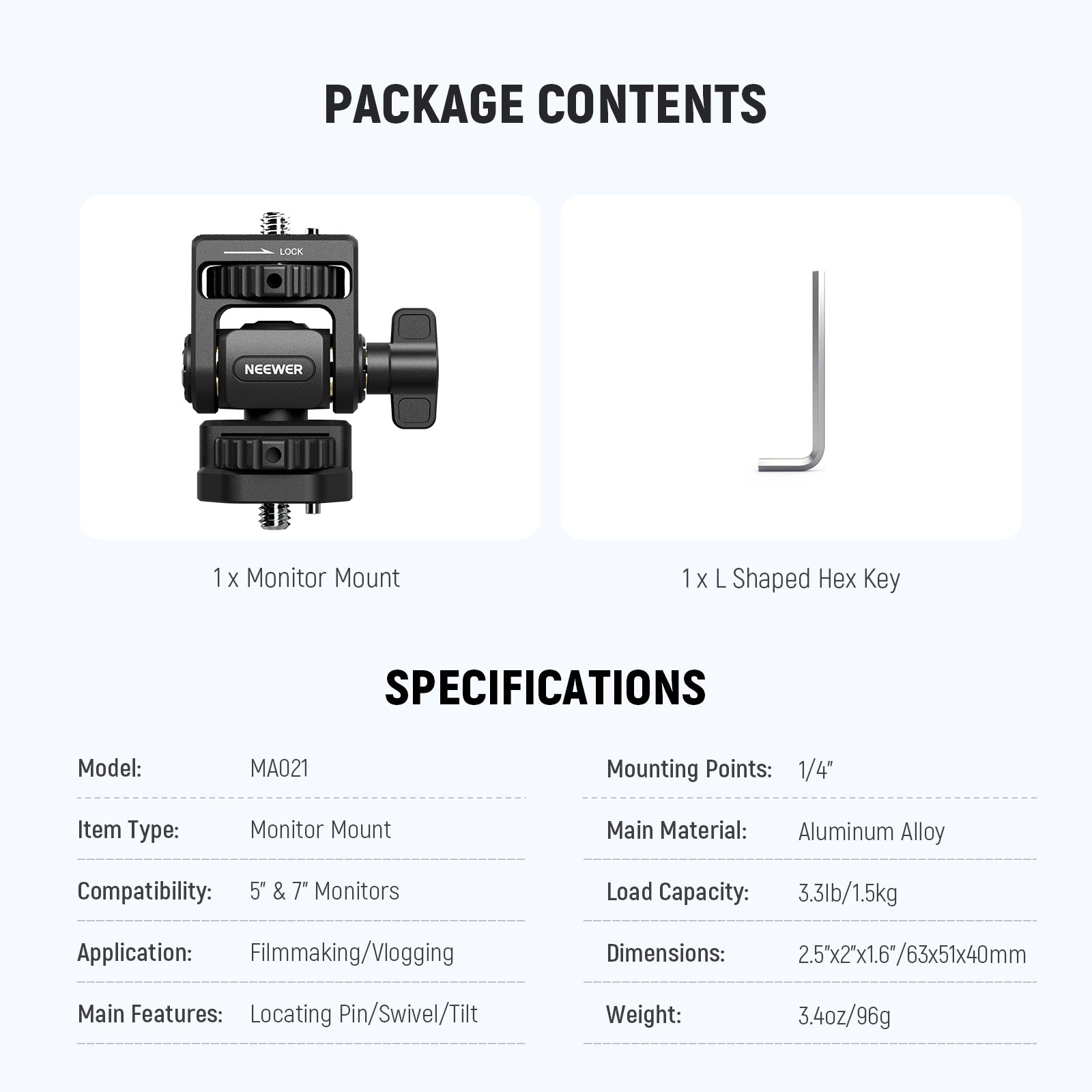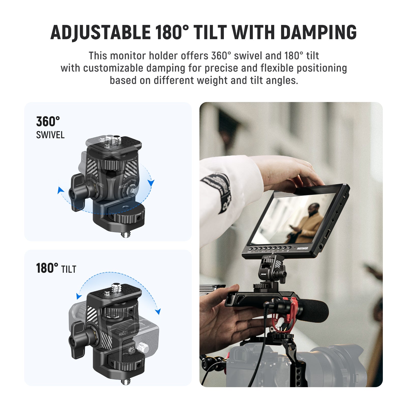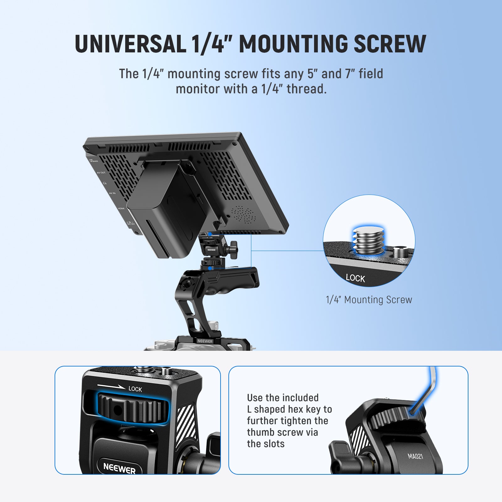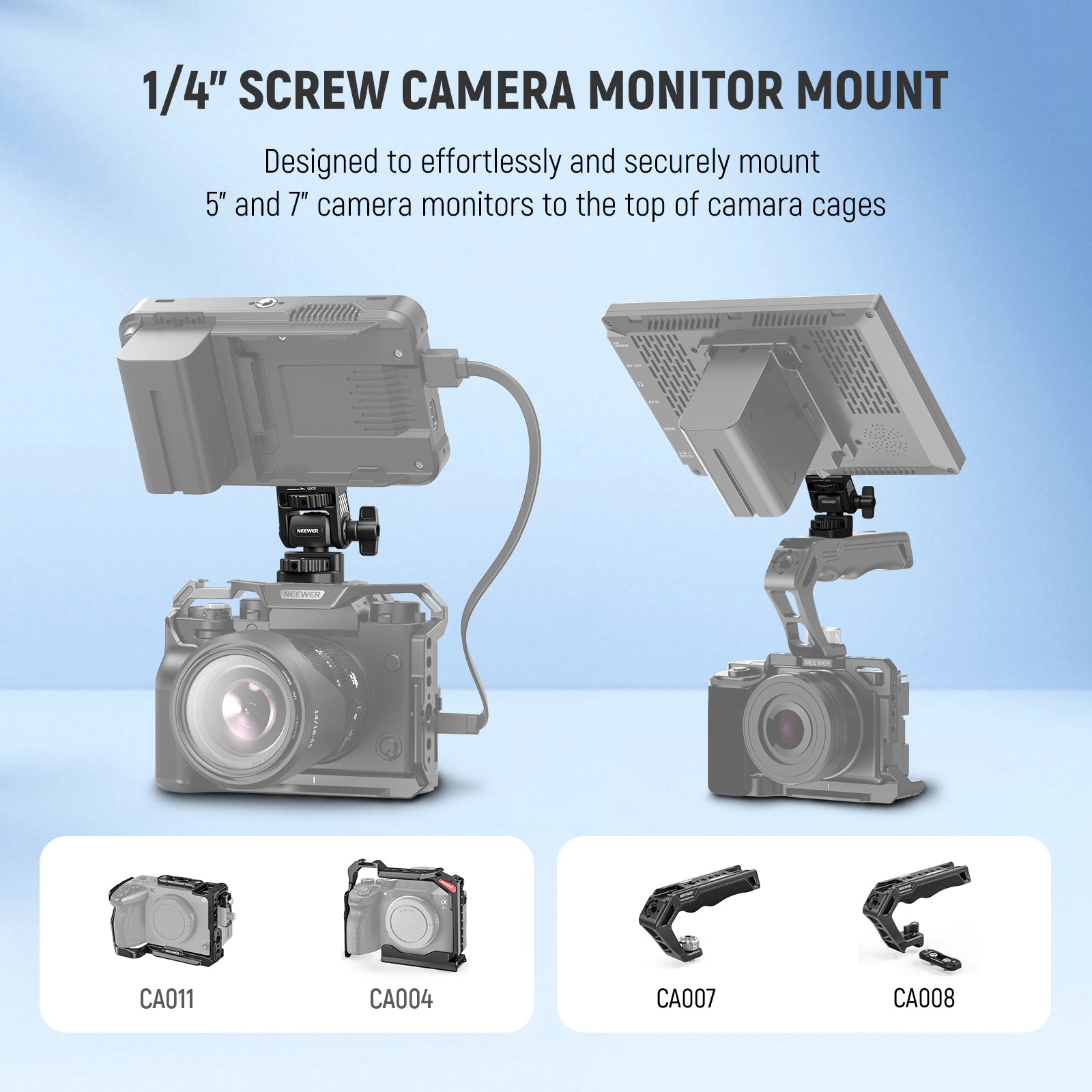 - Per monitor da campo per telecamere da 5" e 7" - Progettato per monitor da campo per telecamere da 5" e 7", questo supporto per monitor con una vite da 1/4" è compatibile con le gabbie per telecamere SmallRig e NEEWER compatibili con telecamere Canon Sony Nikon Fujifilm Fuji, video rig, accessori per maniglia superiore, maniglie laterali, maniglie per gimbal e slitte per telecamere, perfetto per vlog, riprese cinematografiche e fotografia