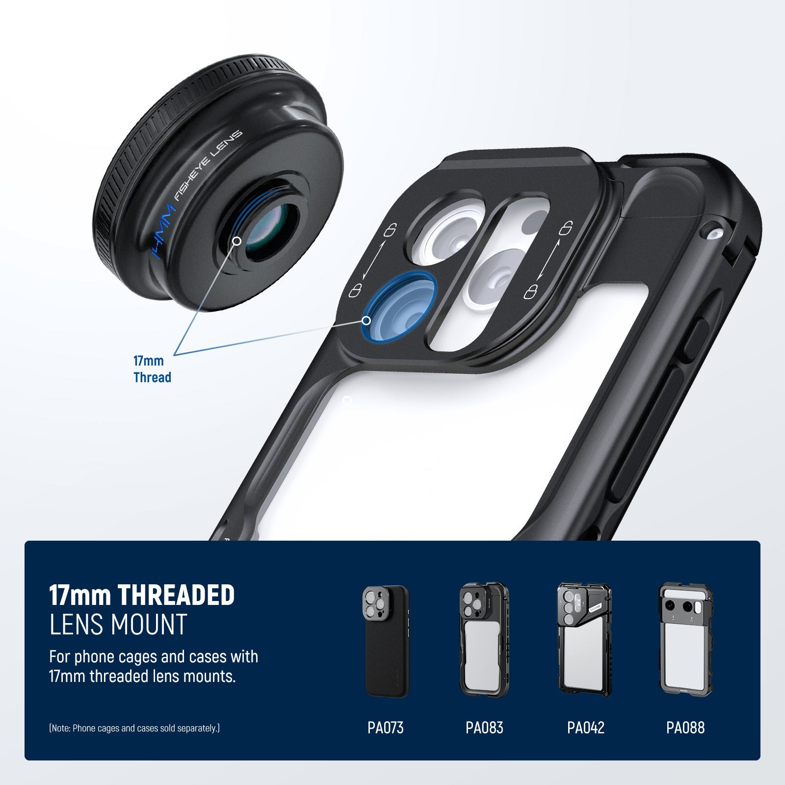 NEEWER LS-77 170° 14mm Fish Eye VR Lens with 17mm Threaded Phone Lens Clip