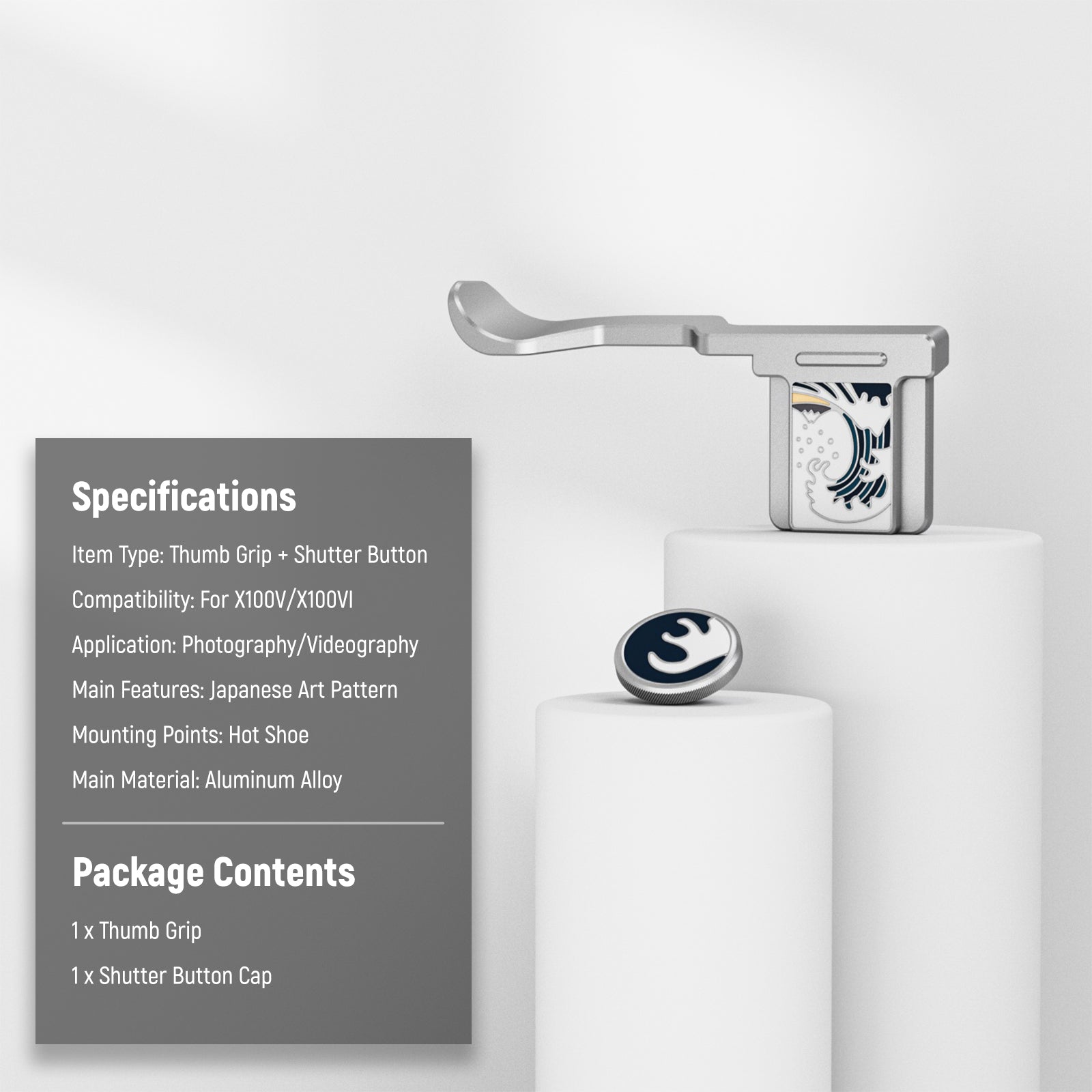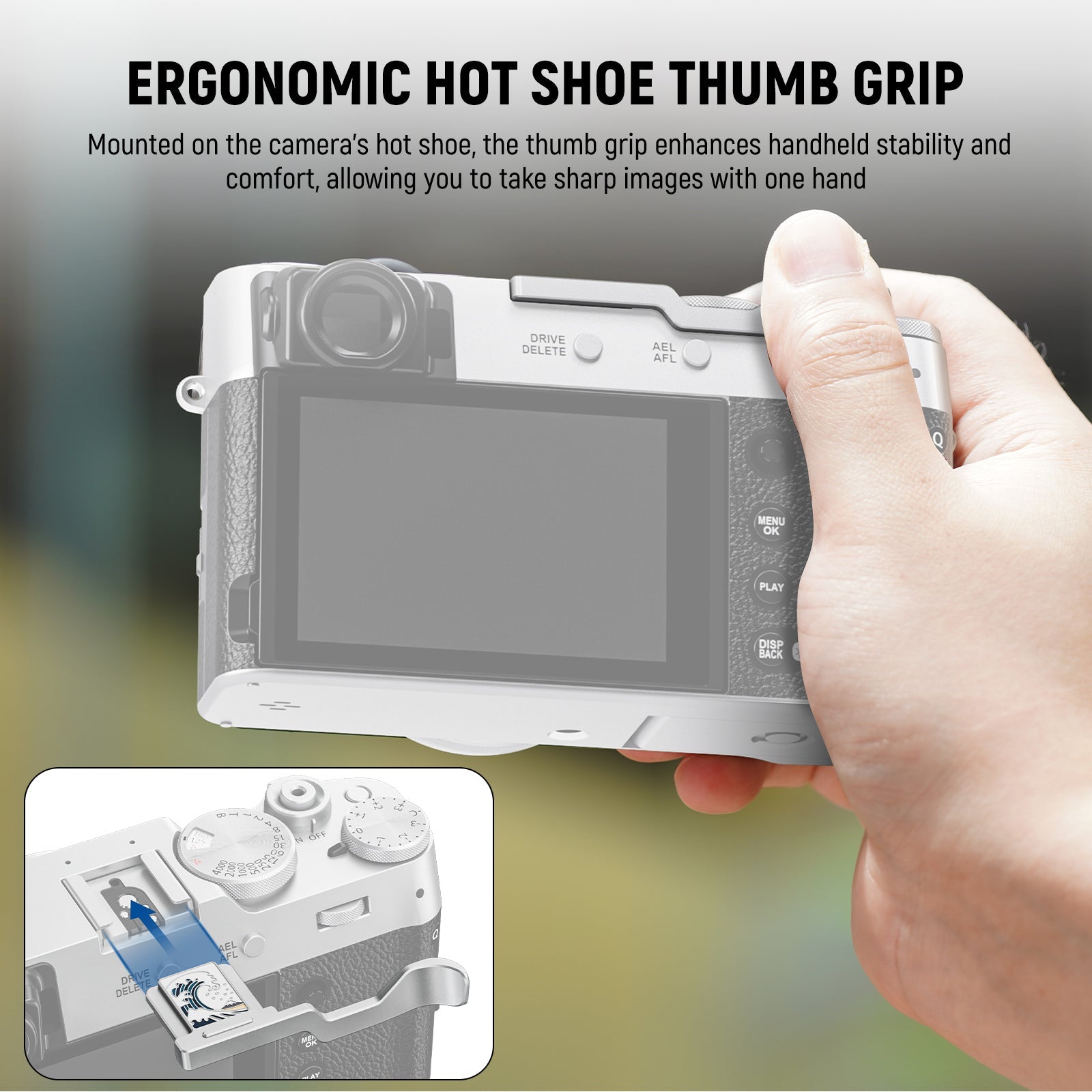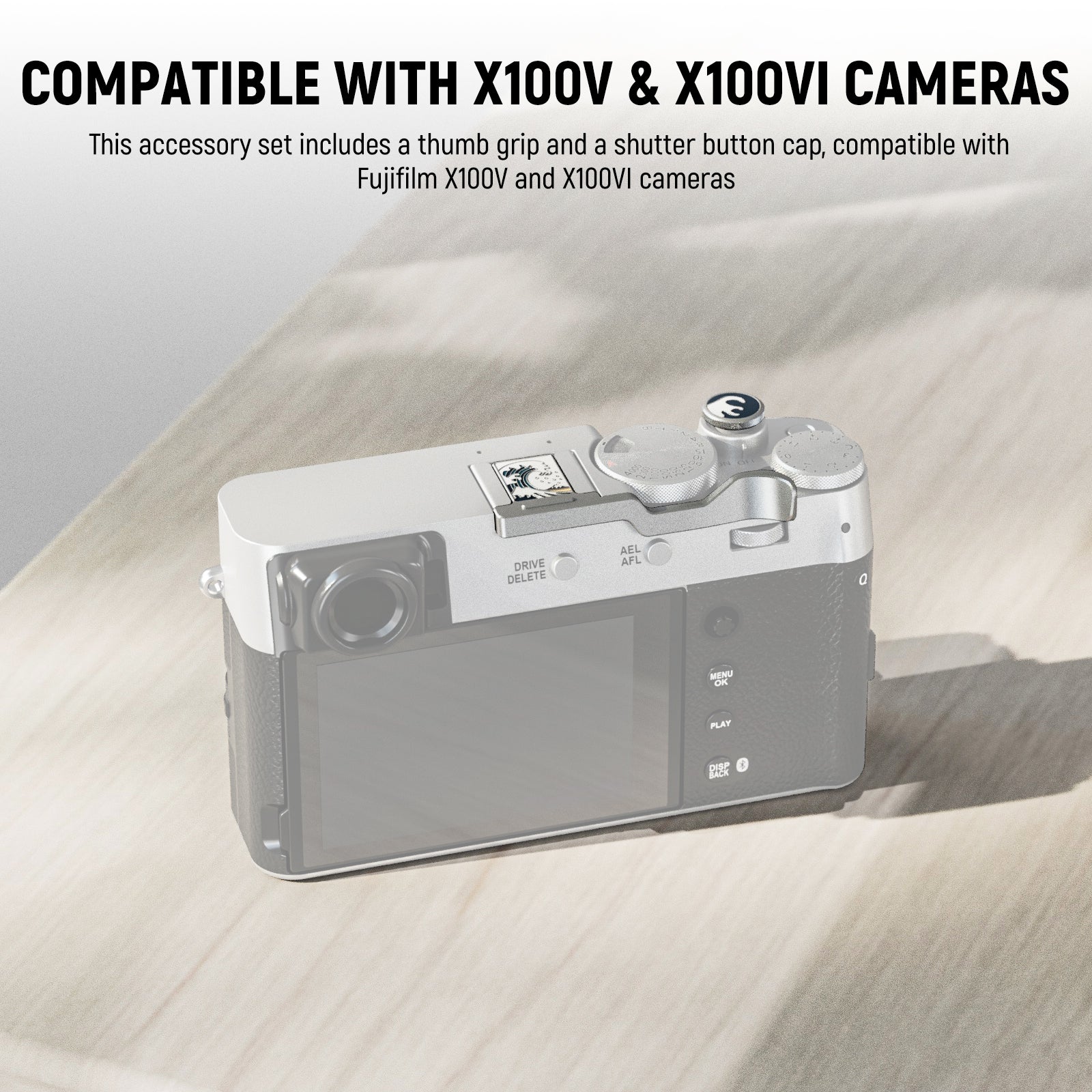 • Compatibile con X100V e X100VI - Questo set di accessori include un'impugnatura per il pollice e un cappuccio per il pulsante di scatto, compatibile con le fotocamere mirrorless Fujifilm X100V e Fuji X100VI.