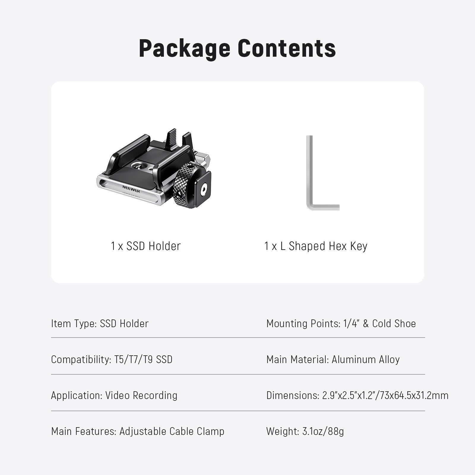 NEEWER UA059 T5/T7/T9 Supporto universale SSD per gabbia per telefono 15 Pro/15 Pro Max