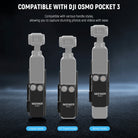 - Molteplici opzioni di montaggio : con uno slot per slitta a contatto freddo sul lato, un'interfaccia a due morsetti sul retro e un bullone di montaggio, il supporto per fotocamera compatibile con DJI Osmo Pocket 3 può essere montato sia in orientamento verticale che orizzontale, opzionalmente su un treppiede, un supporto per fascia toracica, una clip per zaino, una staffa per bicicletta, un supporto a ventosa per auto, ecc. Oppure puoi collegare accessori aggiuntivi come un microfono o un attacco per luce LED per fotocamera.