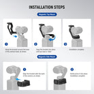 - Installazione magnetica rapida - Compatibile esclusivamente con la fotocamera gimbal DJI OSMO Pocket 3 e i suoi accessori Creator Combo, questa mini luce video a LED è dotata di due staffe di montaggio magnetiche, che consentono un fissaggio flessibile sulla parte superiore o laterale della fotocamera per scatti fotografici e video d'azione, come attrezzatura di illuminazione essenziale per i creatori di contenuti e gli influencer. Basta agganciare le staffe alla fotocamera e fissare magneticamente la luce ausiliaria, senza bisogno di attrezzi, per un'installazione semplice.
