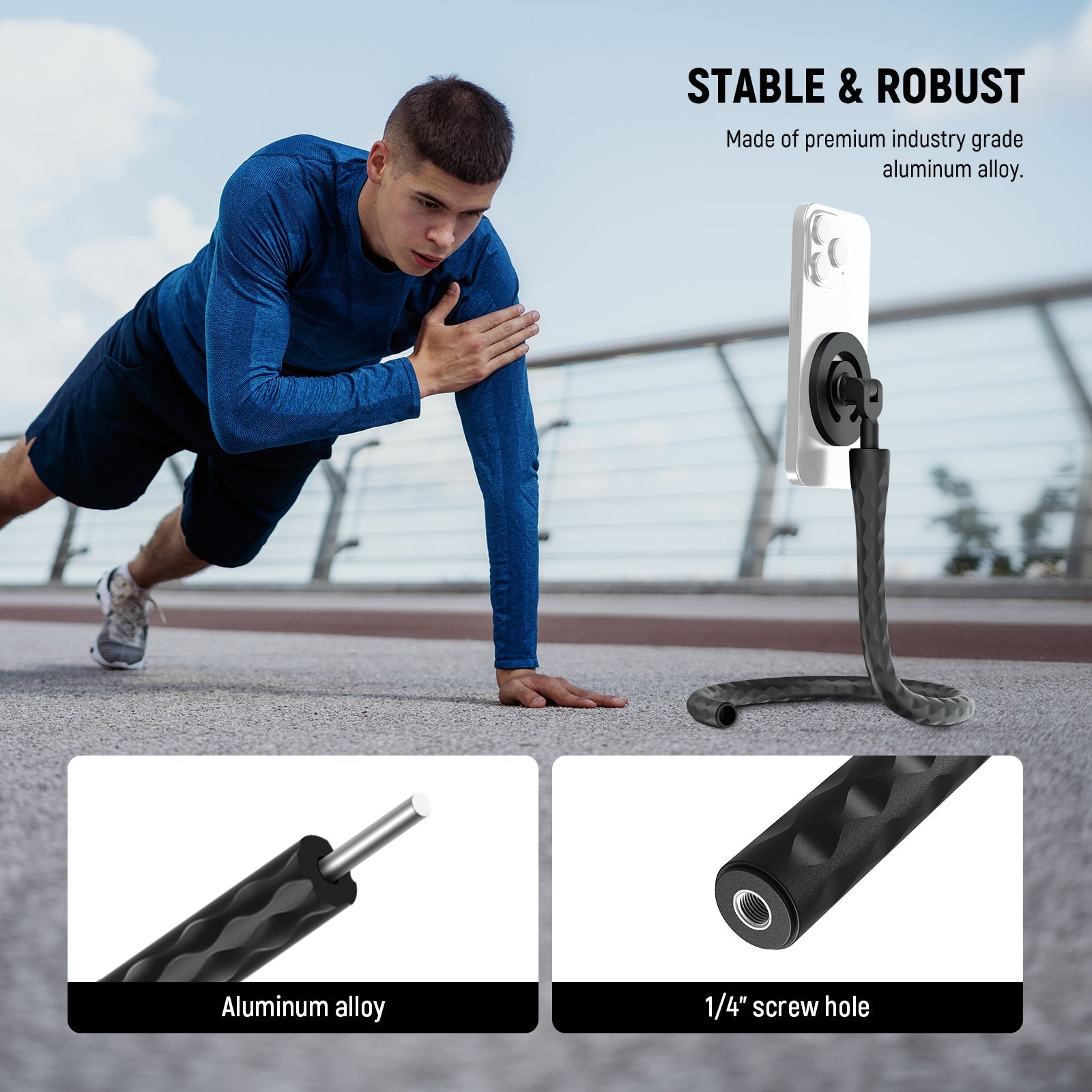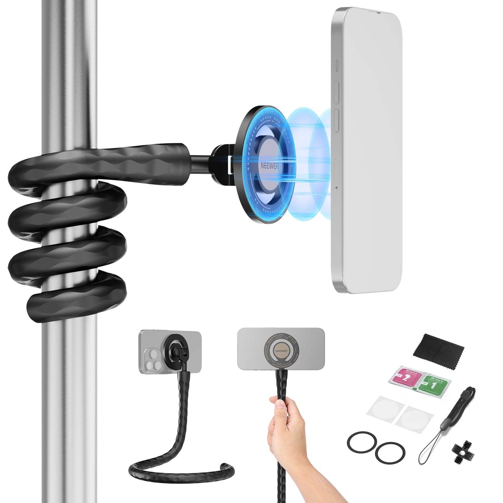 - Supporto flessibile e pieghevole per cellulare : progettato con una striscia di alluminio pieghevole integrata, il supporto flessibile per smartphone può essere regolato di 360 gradi, cambiare facilmente forma e avvolgere vari oggetti, come passeggini, manubri di bici e motociclette, carrelli della spesa, tapis roulant e rotaie, funzionando come mini treppiede, selfie stick, asta di prolunga, mani libere attorno al collo e al supporto per le spalle, stabilizzatore. Libera le mani e registra video POV (Point of View) da qualsiasi angolazione desiderata