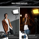 - Doppia alimentazione - La luce portatile AP100C include un adattatore di alimentazione CA 20 V e un cavo di alimentazione per l'illuminazione fotografica in interni. Per l'uso all'aperto, puoi alimentarla utilizzando una batteria con attacco V (14,8-26 V) e un cavo D tap a 4 pin (batteria e cavo D tap venduti separatamente) per un uso ininterrotto. Il cavo di alimentazione CC XLR con un design di bloccaggio impedisce la disconnessione accidentale durante l'uso