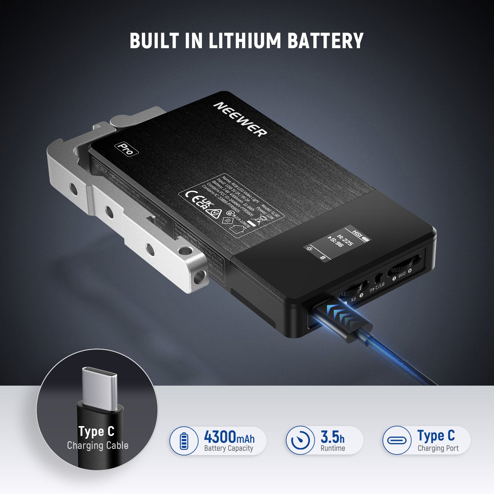- La luce RGB è alimentata da una batteria al litio integrata da 4300 mAh. Supporta la ricarica rapida PD (con ingresso 9V 2A) e può essere ricaricata completamente in 2,8 ore.