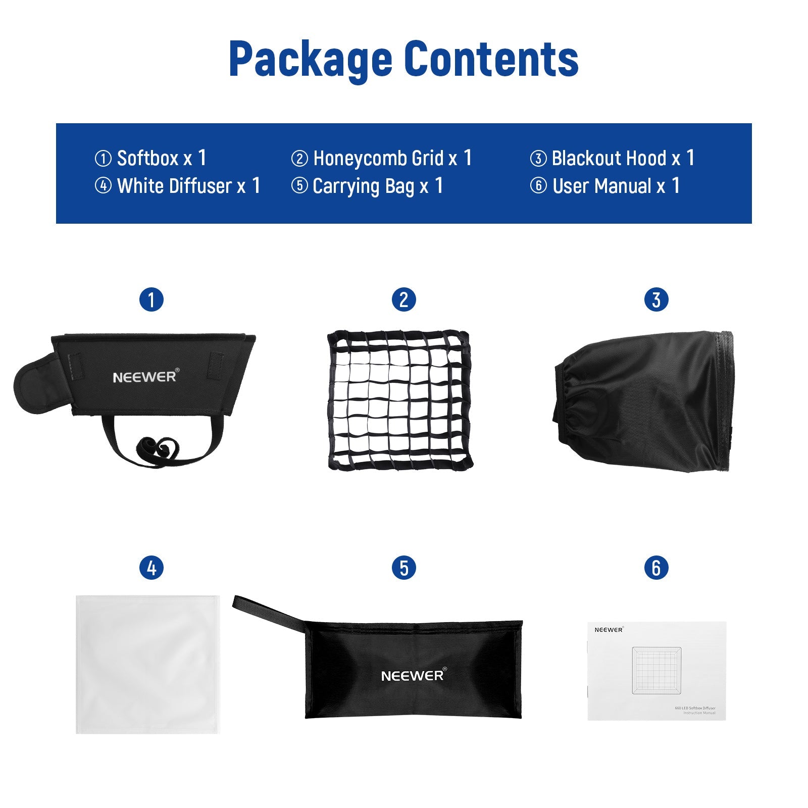 • Illuminazione morbida e piatta : compatibile esclusivamente con le luci video NEEWER NL660/NL660S/NL660-2.4G/SNL660/RGB660/SNL530 LED/RGB660 Pro/RGB660 PRO II, il softbox con pannello diffusore può creare un'emissione luminosa morbida e uniformemente distribuita per ritratti, fotografia di prodotti e video di YouTube.