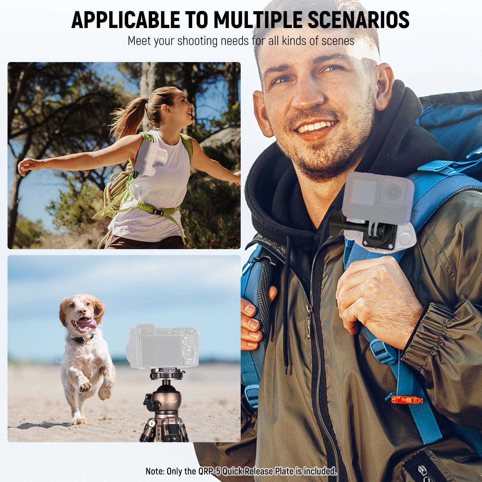 - Piastra QR a tripla compatibilità con cambio rapido - Compatibile con attacco a clip per tracolla per zaino, compatibile con base di serraggio per piastra Arca Swiss da 38 mm, compatibile con Ulanzi F38, compatibile con supporto stabilizzatore per tracolla per zaino Falcam F38. Monta senza sforzo la tua fotocamera su un treppiede, monopiede, slider o stabilizzatore con sistemi di montaggio identici e consente un rapido scambio tra una tracolla per zaino e l'altra.
