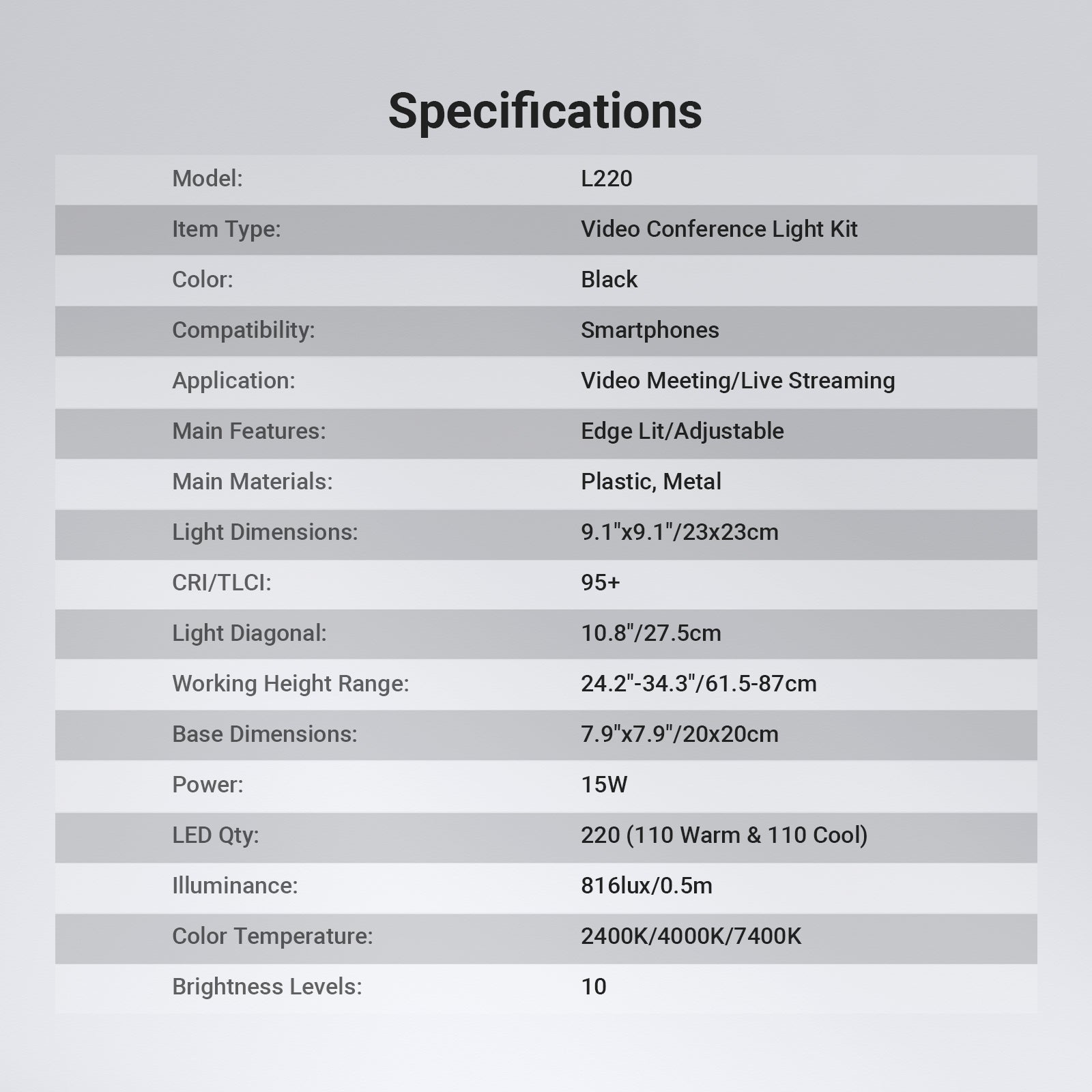 - Tecnologia Edge Lit per un'illuminazione morbida con zoom : la luce a pannello da 15 W e 10,8" offre una luce continua morbida e uniformemente diffusa, delicata per gli occhi, riducendo al minimo i riflessi intensi e la luce blu. CRI95+ per una fedeltà cromatica realistica, garantisce video e foto professionali.