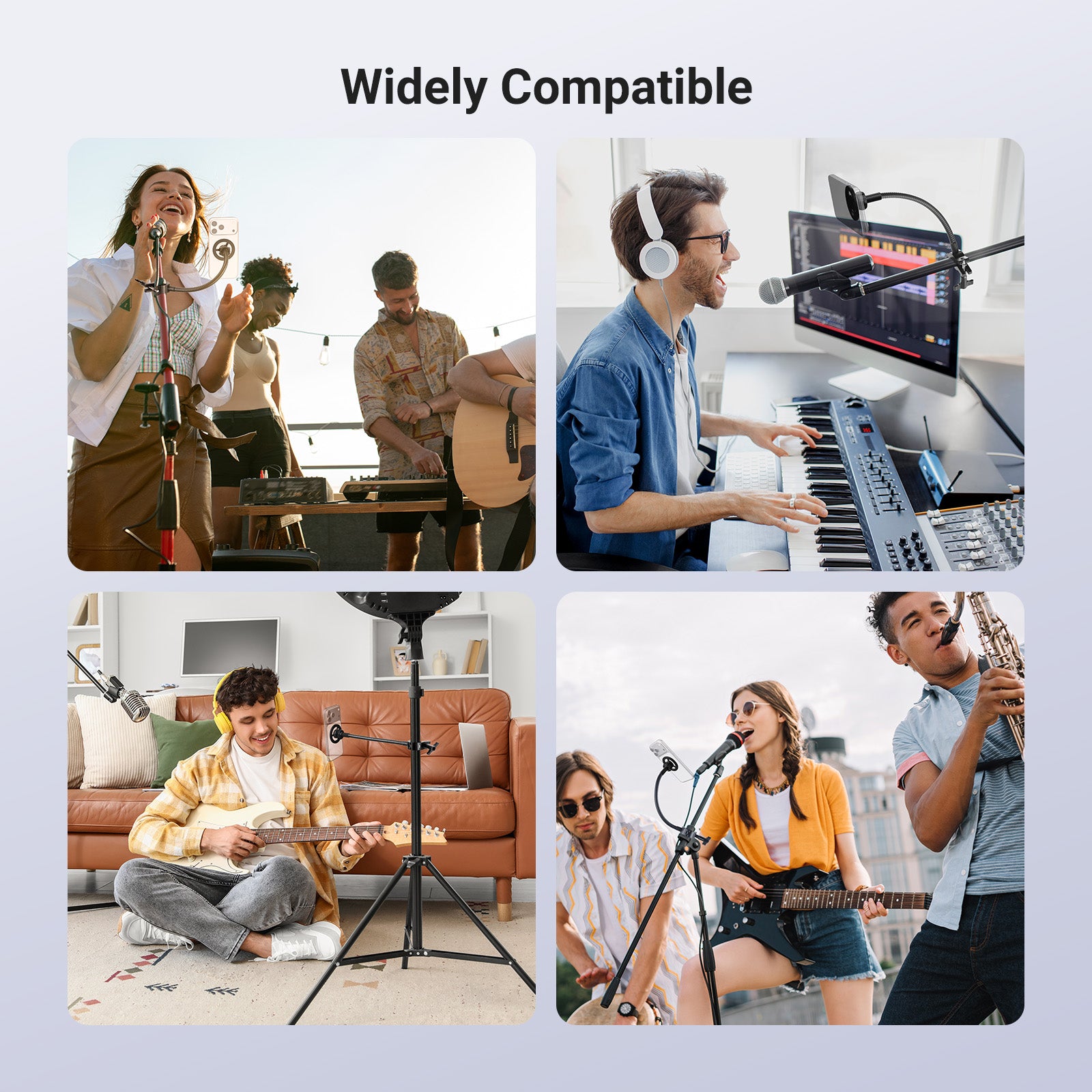 • Supporto universale per telefono : il supporto per microfono regolabile da 2,6" a 3,7" (da 65 a 95 mm) è compatibile con iPhone 16, 15 Pro Max Plus, 16e, iPhone 14, 13, 12, Android, Samsung Galaxy S25, S24, S23 Ultra, Google Pixel 9, 8, 7 Pro, Huawei e altri smartphone per riprese verticali e orizzontali. I cuscinetti antiscivolo proteggono il telefono dai graffi. Ideale come accessorio essenziale per la fotografia di cellulari e come attrezzatura indispensabile per le riprese video degli influencer.