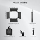 • Materiali e accessori di livello aeronautico: realizzati in lega di alluminio di eccellente qualità con eccellente dissipazione del calore; interfaccia orizzontale e verticale; la staffa a U consente ai fotografi di regolare l'angolo di illuminazione; il fissaggio delle porte a battente consente alle sorgenti luminose di creare un fascio di luce; dotato di un diffusore bianco per ammorbidire la luce intensa