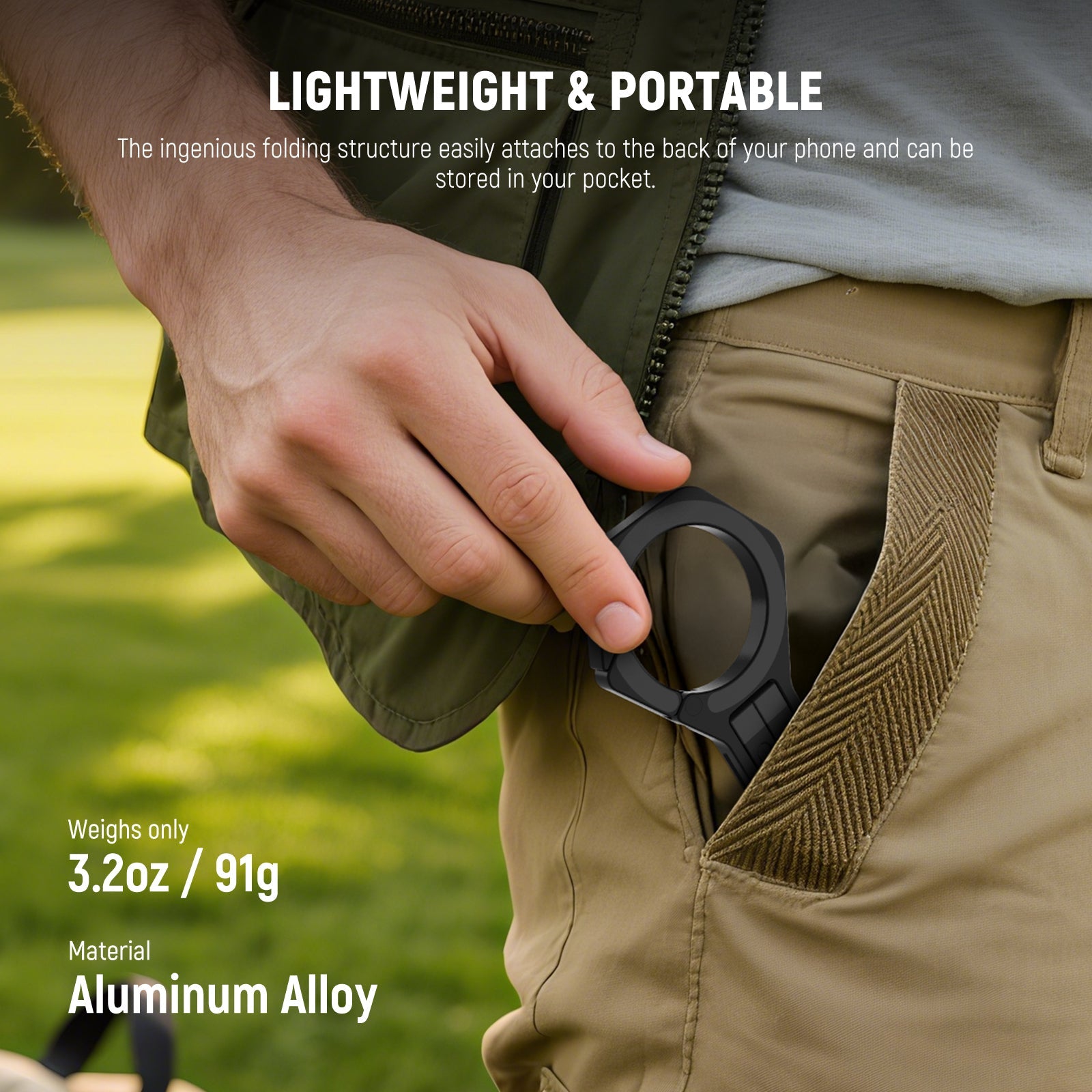 - Lightweight & Portable- Made of aluminum alloy, the magnetic phone holder tripod stand selfie stick weighs just 3.2 oz (91 g), and provides stable support for self vlogging, live streaming, video recording, video calls, online meetings, and more. The ingenious folding structure attaches to the back of your phone and can be stored in your pocket, ideal for outdoor photography and travel as influencer must have gear
