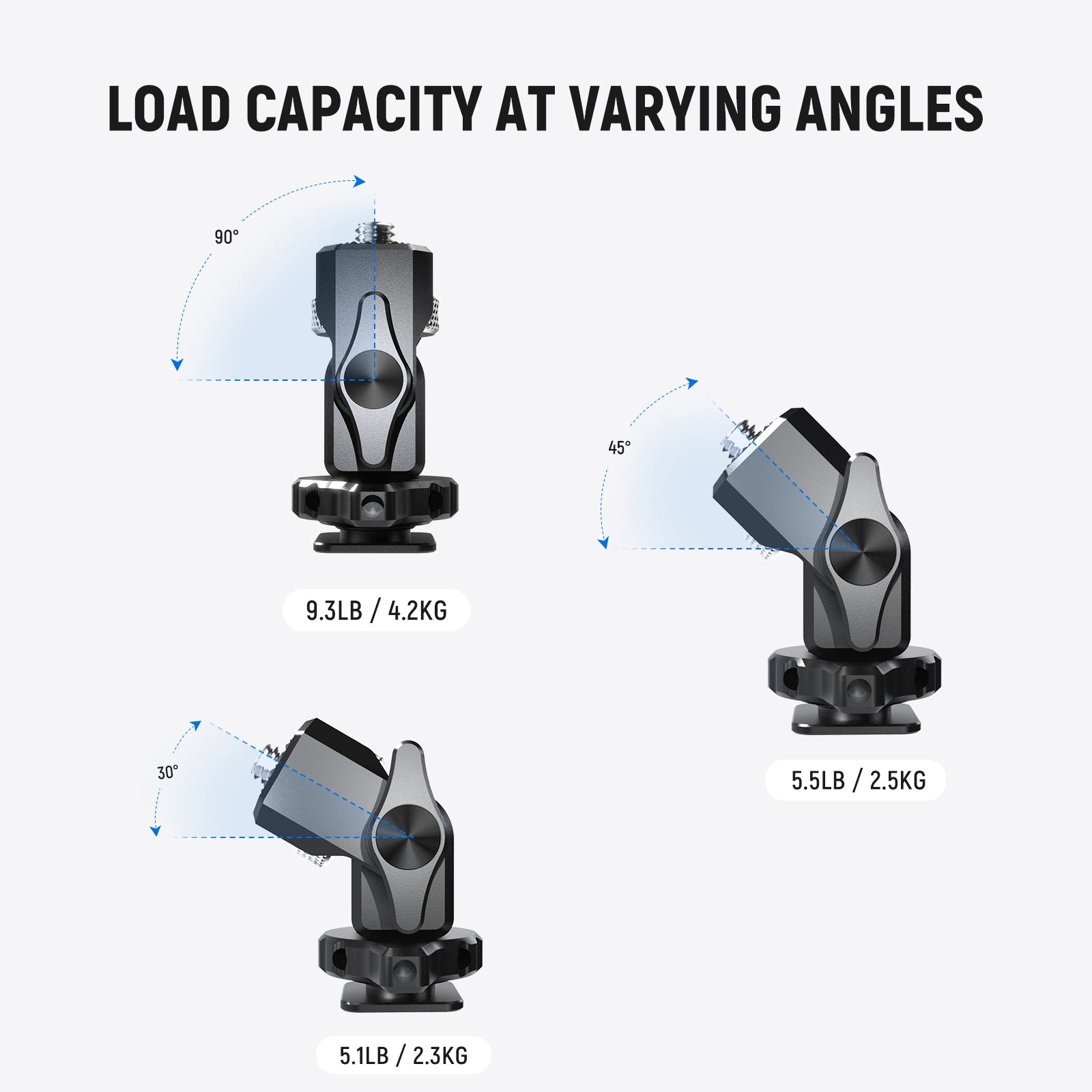 • Capacità di carico ad angoli diversi : la capacità di carico varia al variare degli angoli di inclinazione. Capacità di carico a 90°: 9,3 libbre (4,2 kg). Capacità di carico a 45°: 5,5 libbre (2,5 kg). Capacità di carico a 30°: 5,1 libbre (2,3 kg)