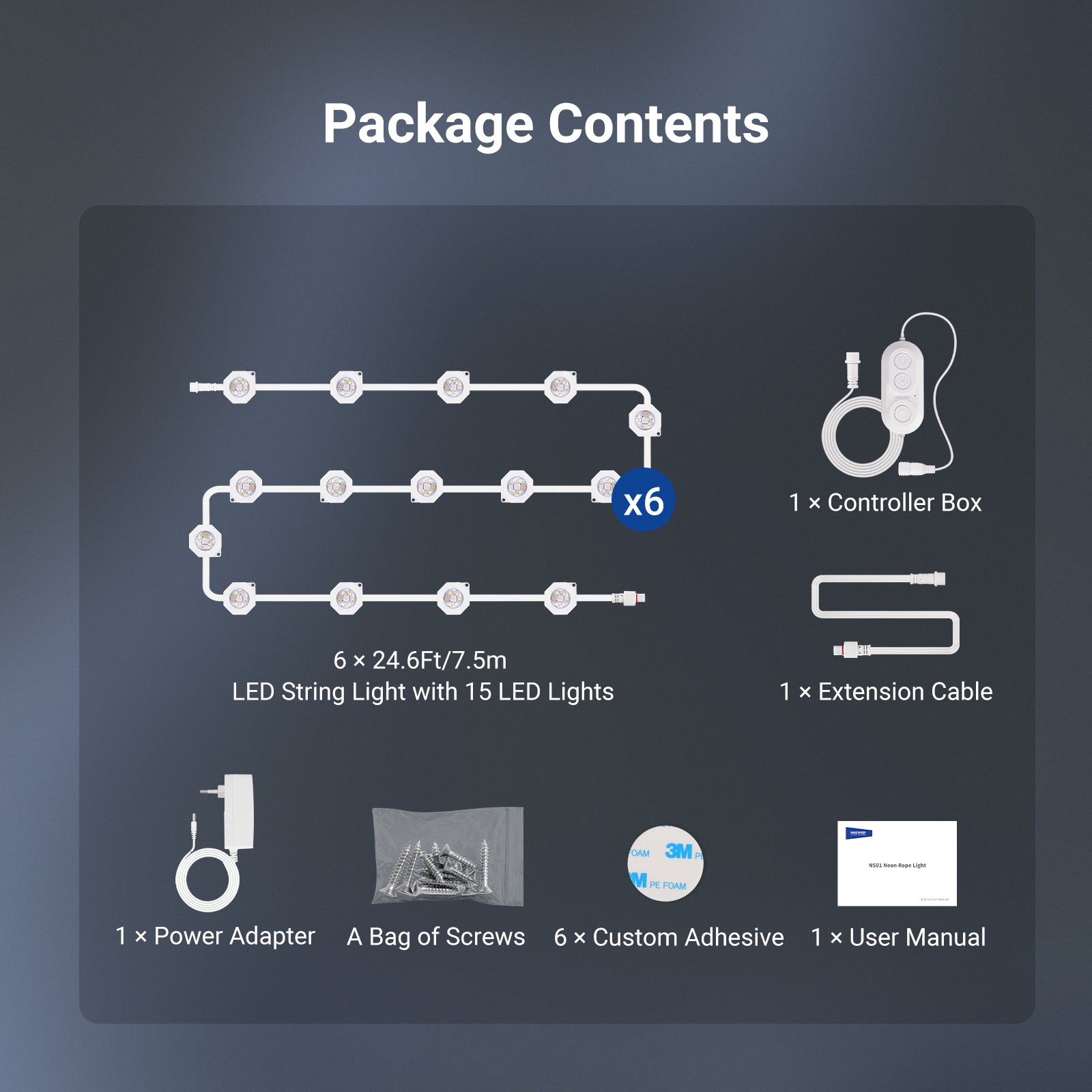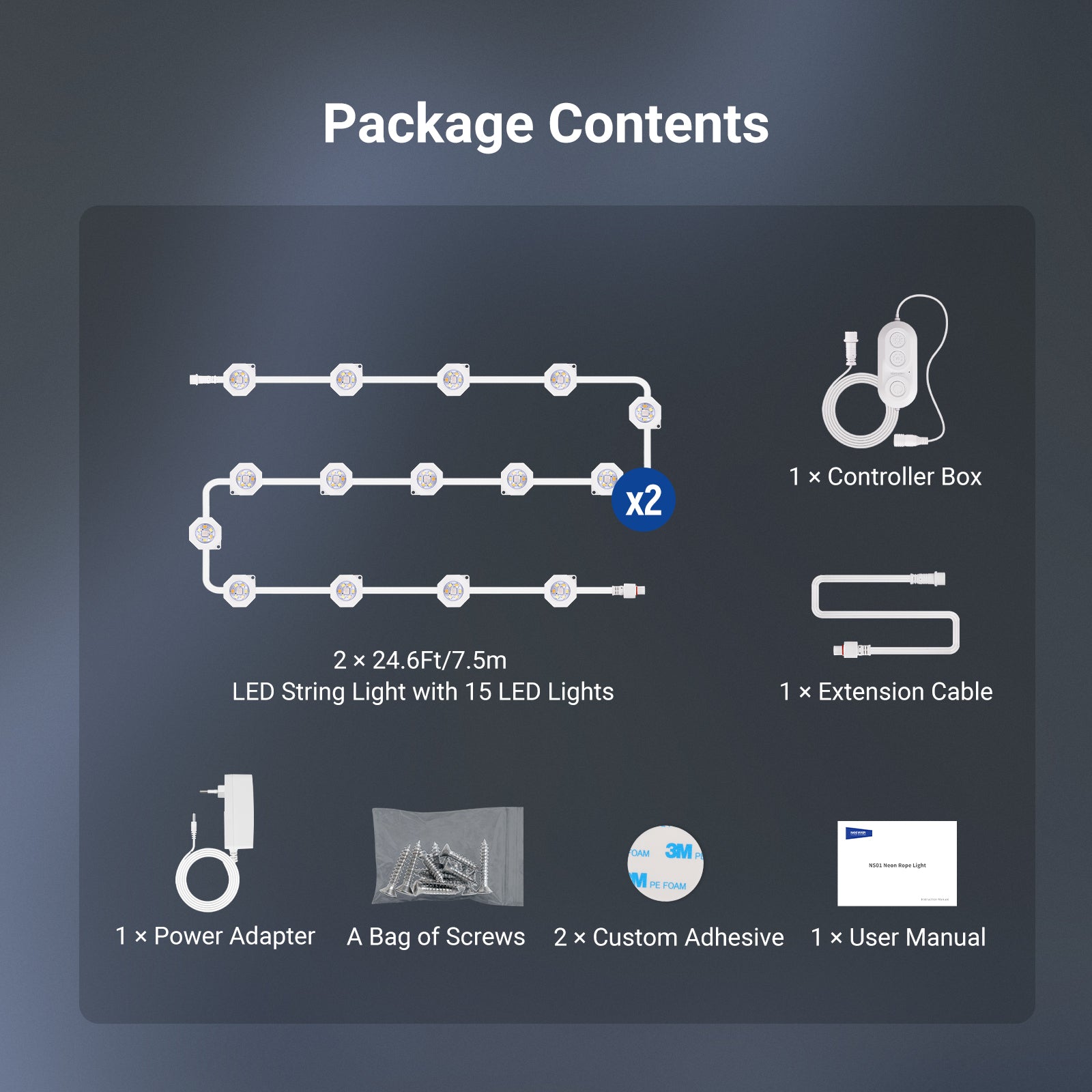 - Quantità di luci: 15 luci LED per stringa (7 LED per luce)