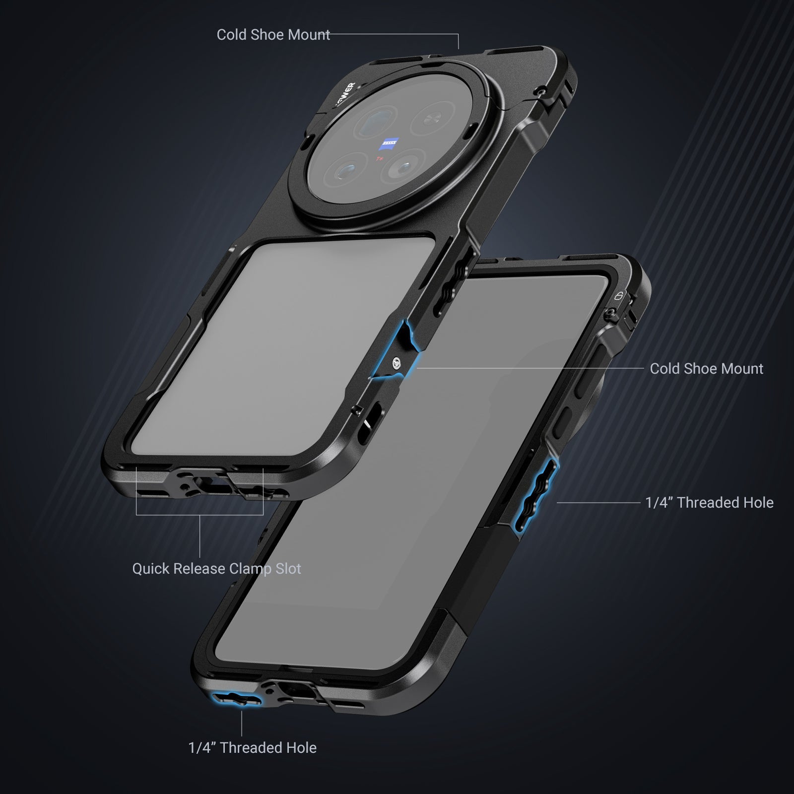 - Compatibile con VIVO X200 Ultra - Gabbia stabilizzatrice per telefono per vlogging su YouTube/TikTok, streaming live, fotografia mobile, videografia, produzione cinematografica e chiamate Zoom. Robusto telaio in lega di alluminio e cuscinetti antiurto proteggono il telefono.
