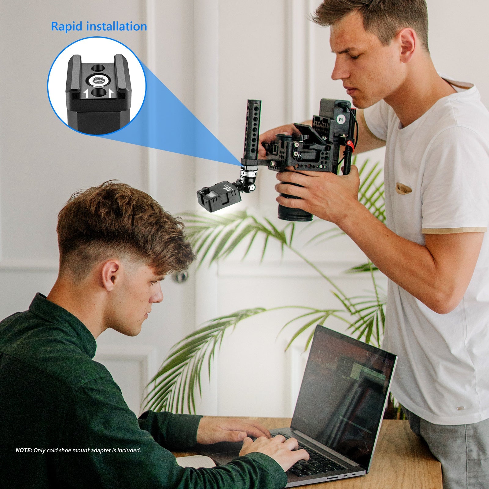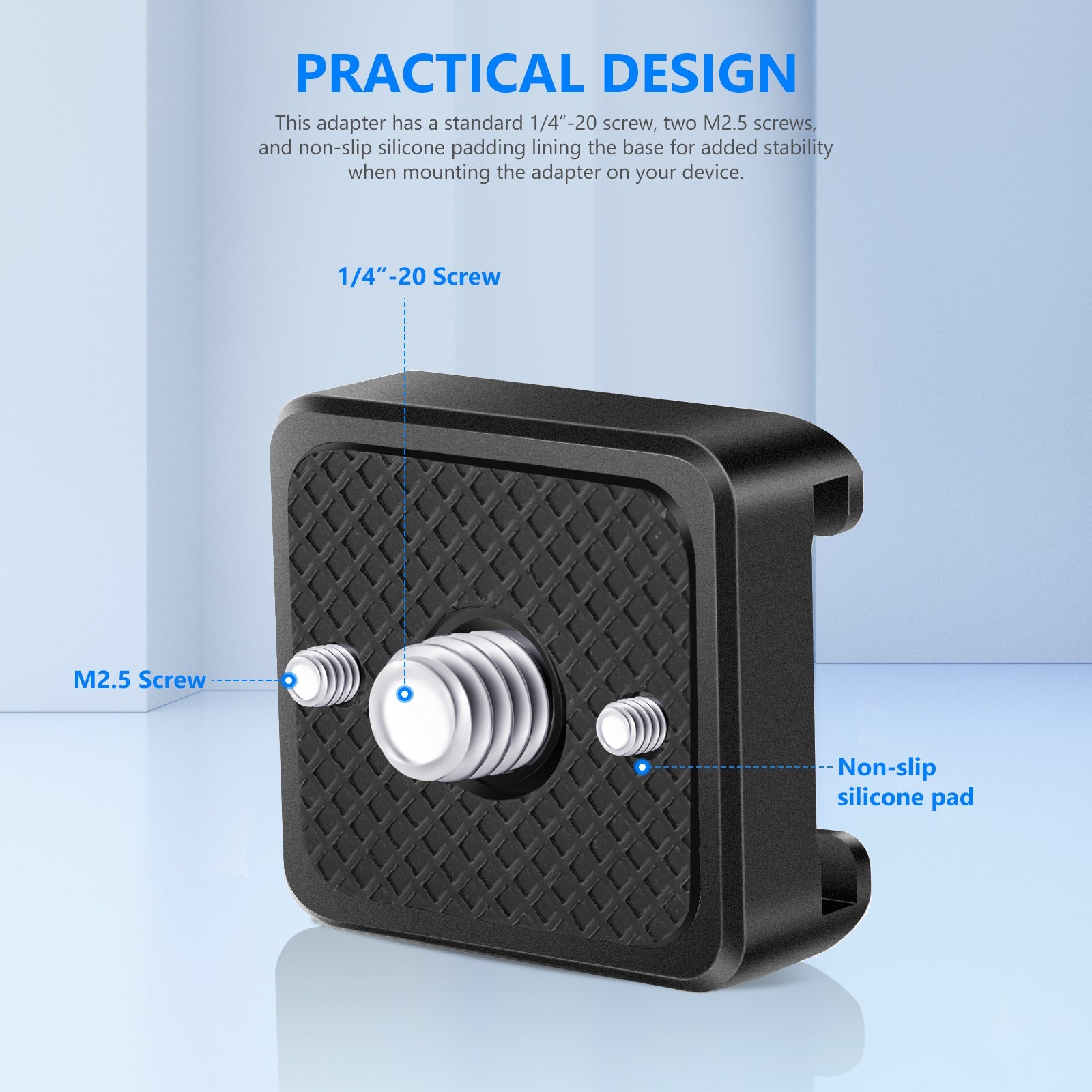 - I supporti per slitta fredda della fotocamera sono dotati di un foro per vite da 1/4"-20, due fori per vite M2,5 e imbottitura inferiore in gomma antiscivolo per un montaggio sicuro sul dispositivo compatibile.