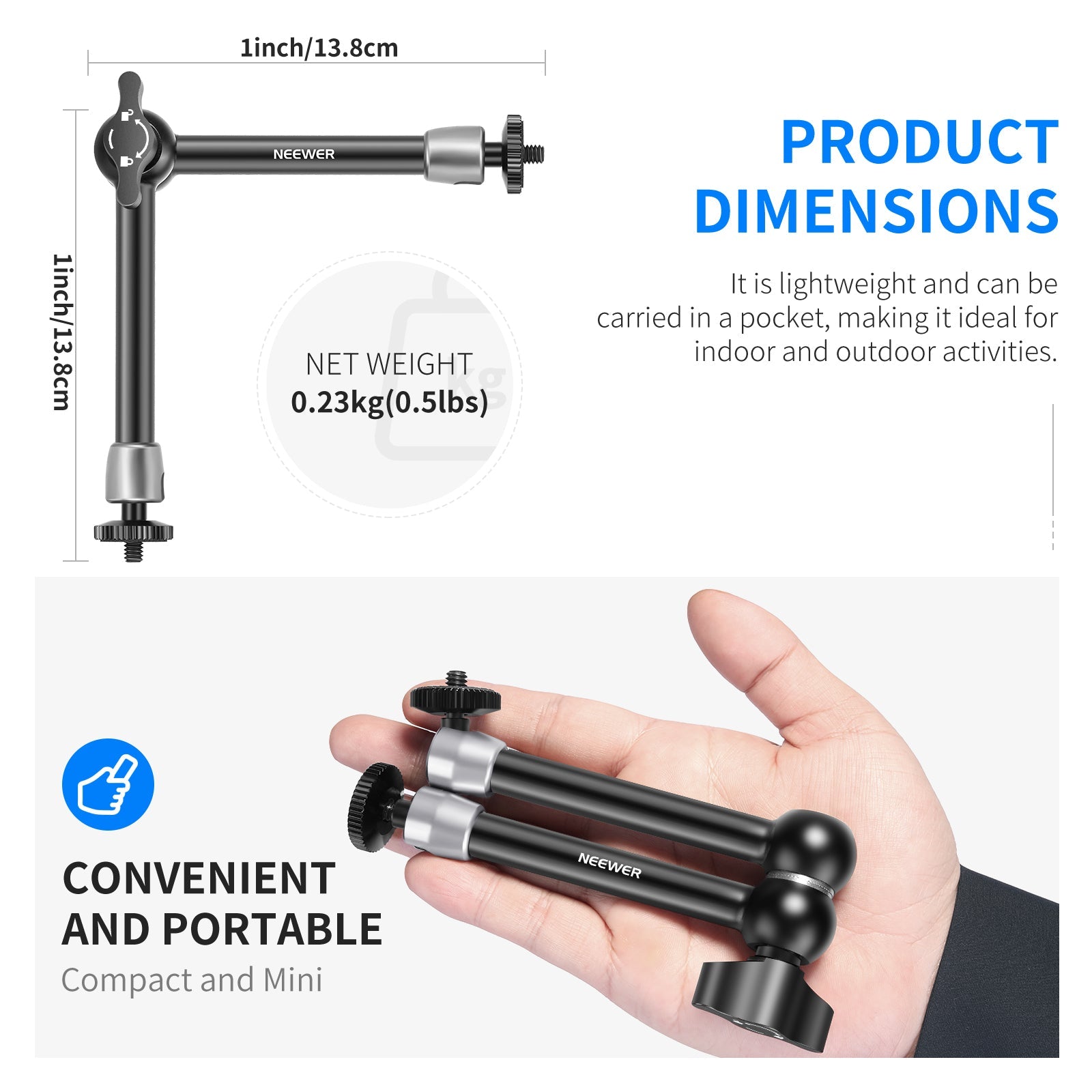 - Realizzato in lega di alluminio, il braccio magico è durevole, solido ma leggero.