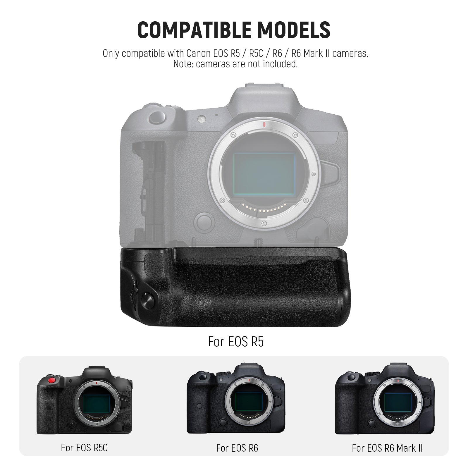 - Compatibilità del modello : l'impugnatura portabatteria NEEWER BG-R10 è compatibile con le fotocamere Canon EOS R5 R5C R6 R6 Mark II per immagini/video nitidi con orientamento verticale e maggiore potenza della batteria