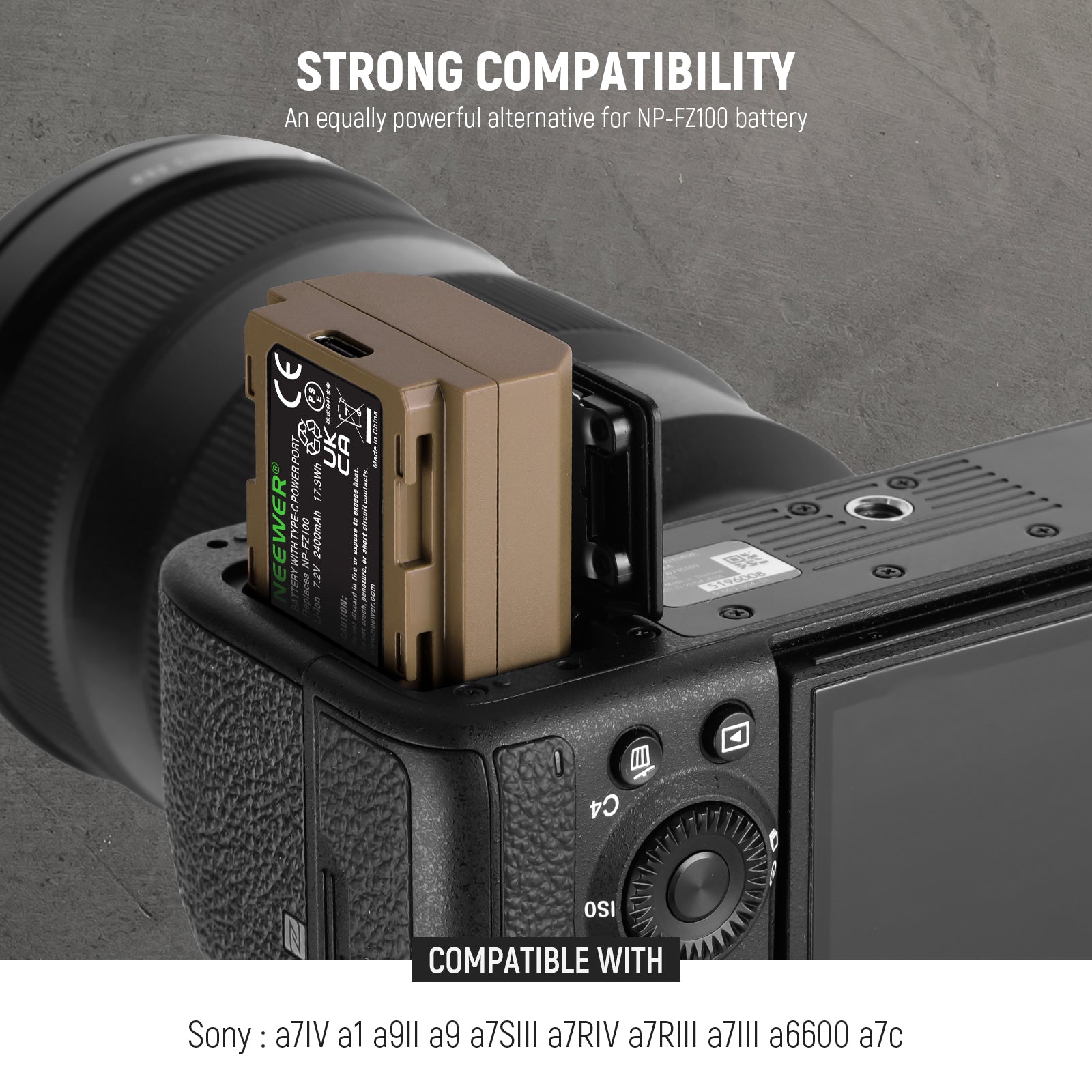 Batteria sostitutiva NEEWER NP-FZ100 2400mAh per Sony