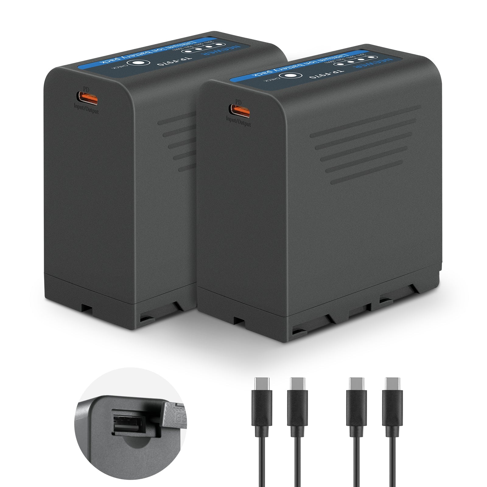 - Doppia porta e ricarica facile : la batteria NP-F970 è dotata di una porta USB A e di una porta USB Type-C bidirezionale. La porta USB Type-C può funzionare come ingresso o uscita e supporta la ricarica rapida PD da 20 W per caricare completamente la batteria in 2,5 ore. La porta USB A dispone di un'uscita da 5 V per caricare smartphone e tablet. Ricarica la batteria tramite prese a muro, caricabatterie da auto e caricabatterie portatili.