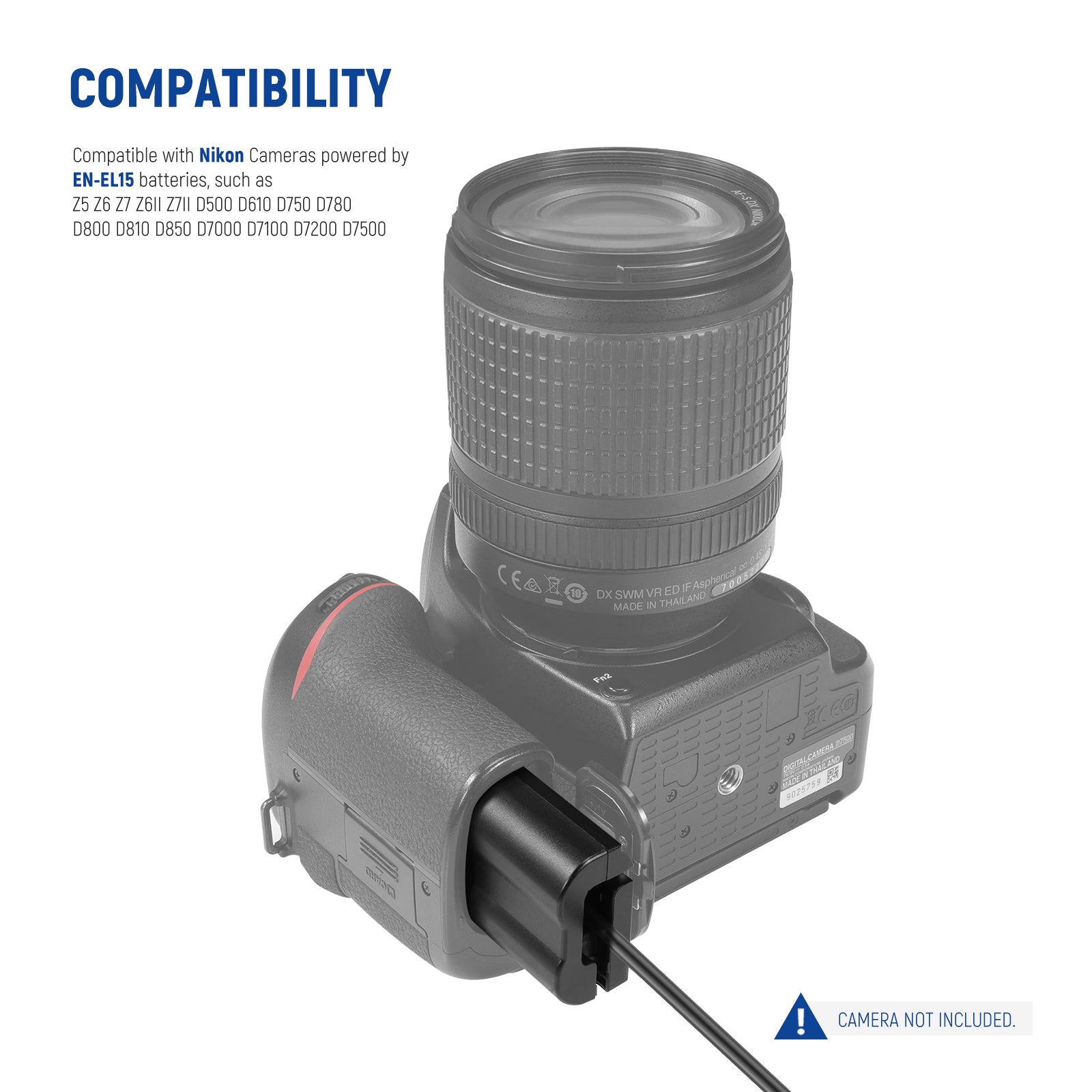 - Compatibile con fotocamere che funzionano con batterie EN-EL15. Compatibile con NIKON Z5 Z6 Z7 Z6 II Z7 II D500 D600 D610 D750 D7000 D7100 D7200 D7500 D800 D800E D810 D850 D800A.