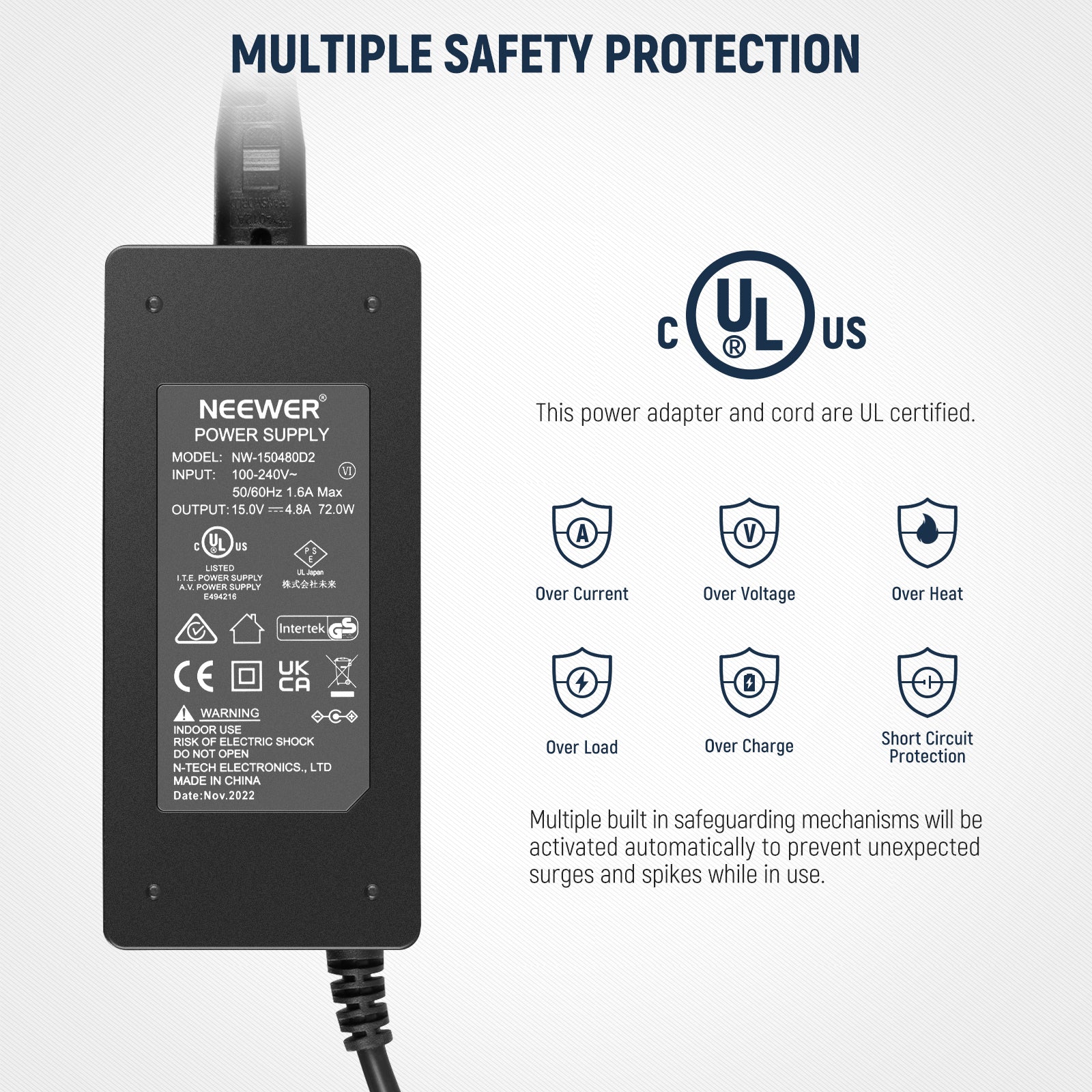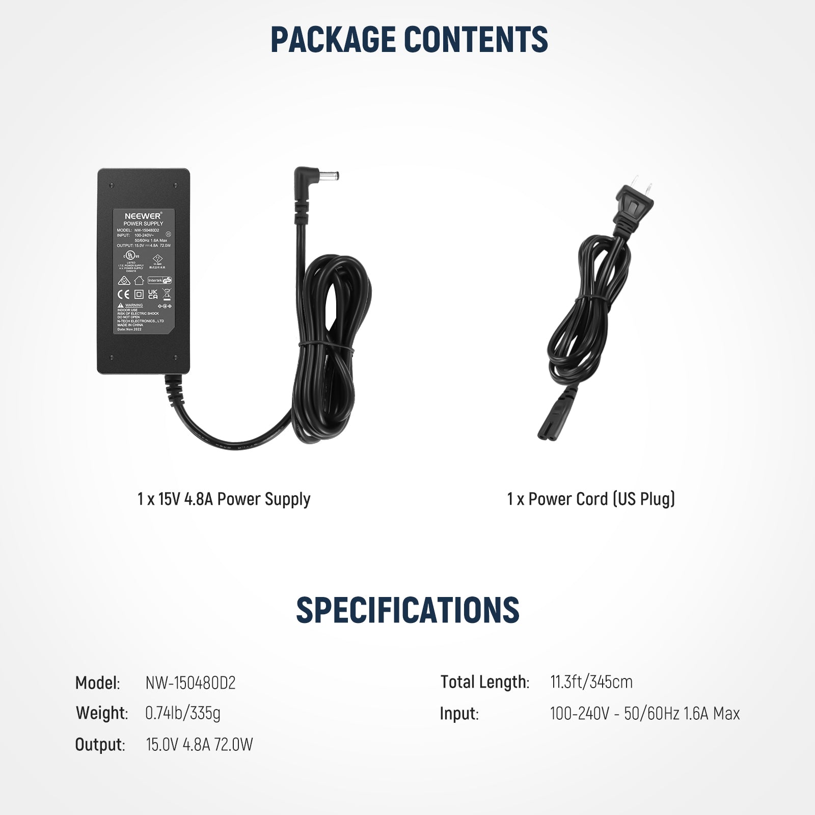 - Ampia compatibilità - Compatibile con i pannelli luminosi LED NEEWER: RGB660 RGB168 RGB1200 RGB176 RGB190 RGBC80 RGB960 RGB530 RGB480 BH-20RGB NL660 NL480 660 530 480 LED NL-288ARC NL-360ARC NW48 T140 176 GL1 e GL1 Pro; NEEWER Luci continue; NEEWER Luci Anulari RL-18 RGB18 RL-14 e Altri monitor, schede amplificatori audio, altoparlanti portatili alimentati, decoder via cavo, router wireless, telecamere CCTV, motori DC, stampanti 3D, progetti informatici, hub, interruttori, alimentatori audio/video e Di più