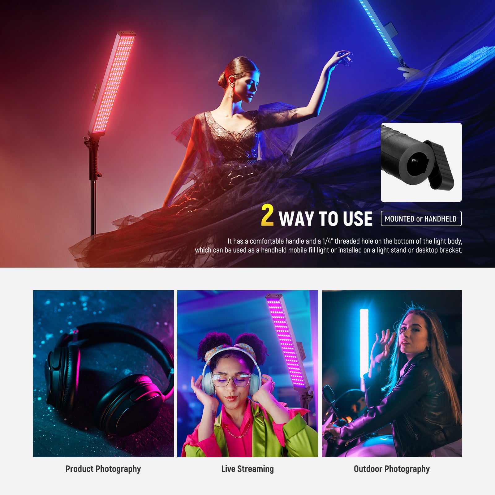 NEEWER 2 pezzi BH20C RGB Light Stick Kit di illuminazione da studio