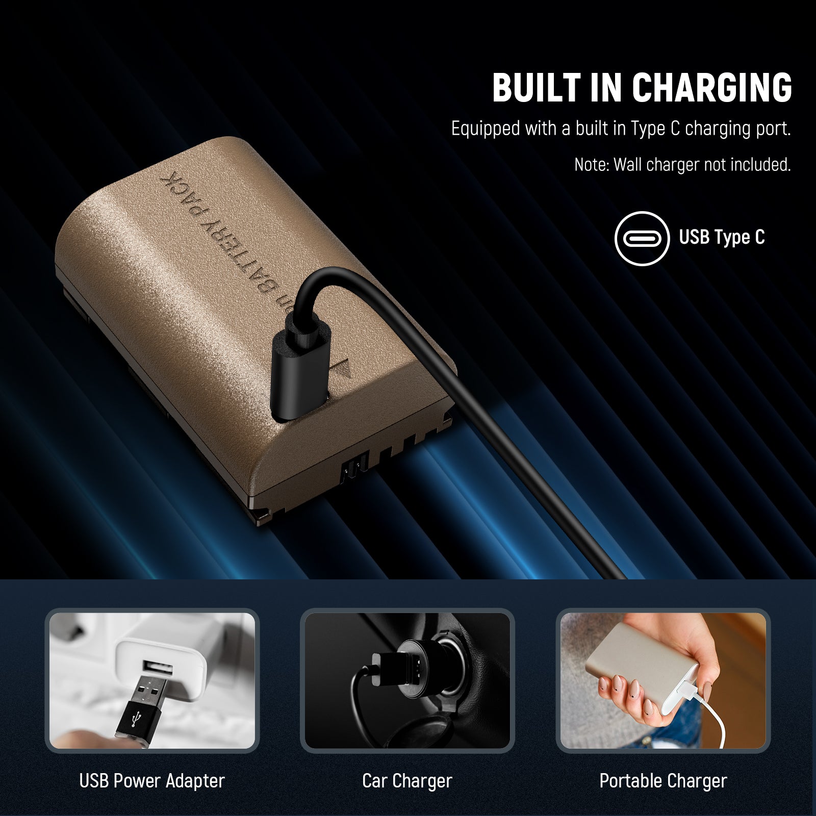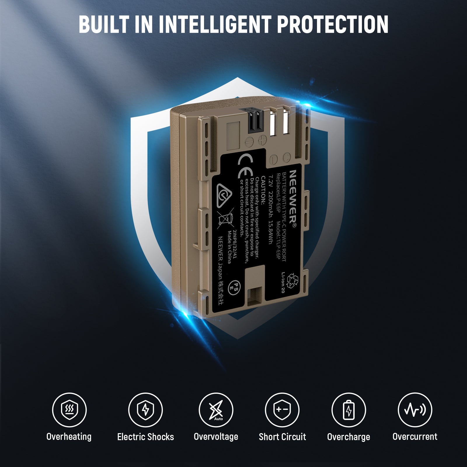 NEEWER 2400mAh LP-E6P LP-E6 LP-E6N LP-E6NH Batteria di ricambio con tipo C