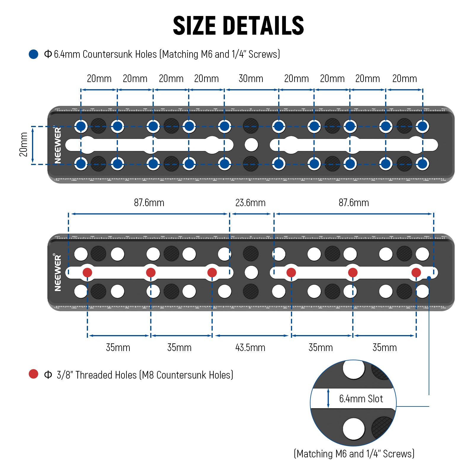NEEWER QR003 Piastra a coda di rondine stile Vixen con barra da 9"/230 mm