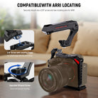 - Facile da installare e sganciare rapidamente - Dotata di diverse interfacce di posizionamento da 3/8" per ARRI, la maniglia della gabbia per telecamera consente un'installazione e una rimozione rapide, consentendo ai fotografi di collegare o sostituire facilmente altre apparecchiature. Questo design migliora l'efficienza del flusso di lavoro, rendendola la scelta ideale per scenari di ripresa dinamici.