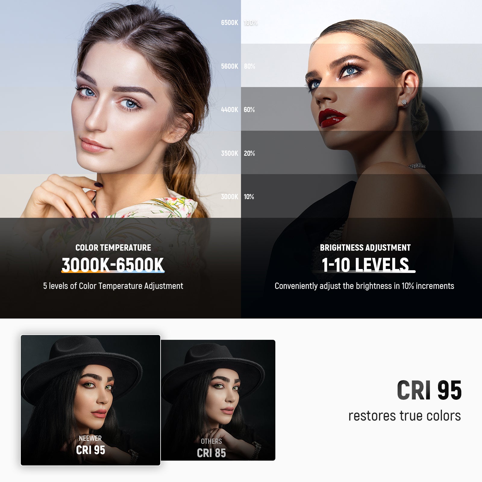 - Vi presentiamo NEEWER BASICS - Semplice e pratica, NEEWER BASICS è una linea di prodotti economica che si concentra su funzioni e design essenziali, senza materiali e accessori superflui. Con 84 LED e una pellicola diffusore, la lampada da tavolo FR16 offre una luce brillante, morbida e uniforme, senza luce blu, sfarfallio o abbagliamento. Essenziale e indispensabile per ufficio, lavoro da casa, studio in dormitorio, lettura, scrivania per computer/gaming, accessori e forniture per fotografi/creatori di contenuti/influencer.