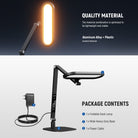 - Pieghevole con altezza e angolazione regolabili : la lampada da tavolo a LED ha un braccio articolato pieghevole a 180° e una testa regolabile per un'angolazione di illuminazione verso l'alto e verso il basso, da un lato all'altro. L'altezza totale della luce ad anello da scrivania è di circa 80 cm, regolabile tramite due giunti superiori. Lampada ad anello portatile da tavolo, ideale per video su YouTube, TikTok, selfie, registrazione video, streaming, truccatori, webcam per monitor di computer portatili, chiamate/riunioni Zoom, podcast, fotografia, videografia, riprese, ecc.