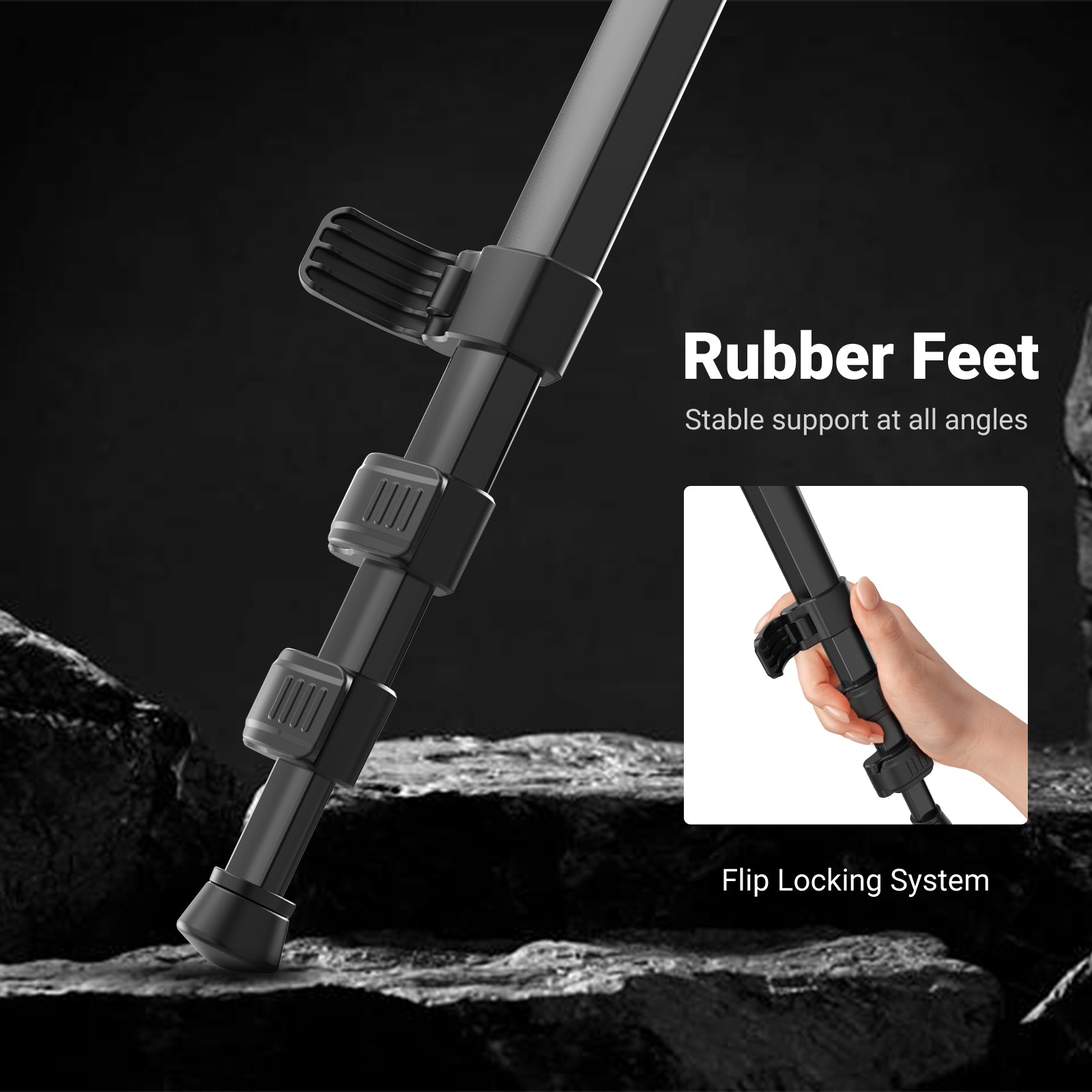 - Superior Stability Compact Travel Tripod- Made of aluminum alloy and plastic, the TP12 heavy duty camera and cellphone tripod stand supports up to 11 lbs (5 kg), but weighs 2.9 lbs (1.33 kg), and it surprisingly features tightly fitted legs to fold to a 2.4" (6 cm) diameter for a single hand grip and on the go. Adjust from 20.1" (51 cm), 52.8" (134 cm) to 66.5" (169 cm), with a liftable center column that is invertible for low angle and macro shots. The non slip rubber feet ensure stability
