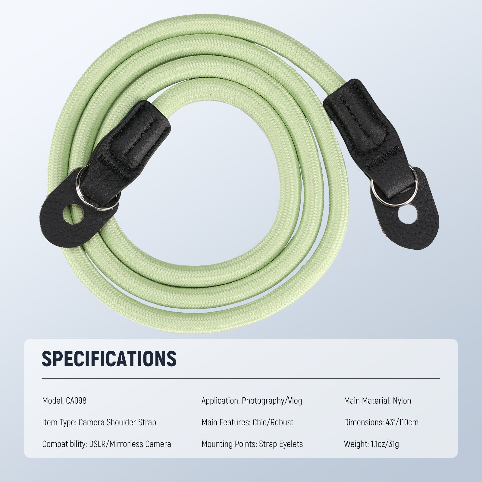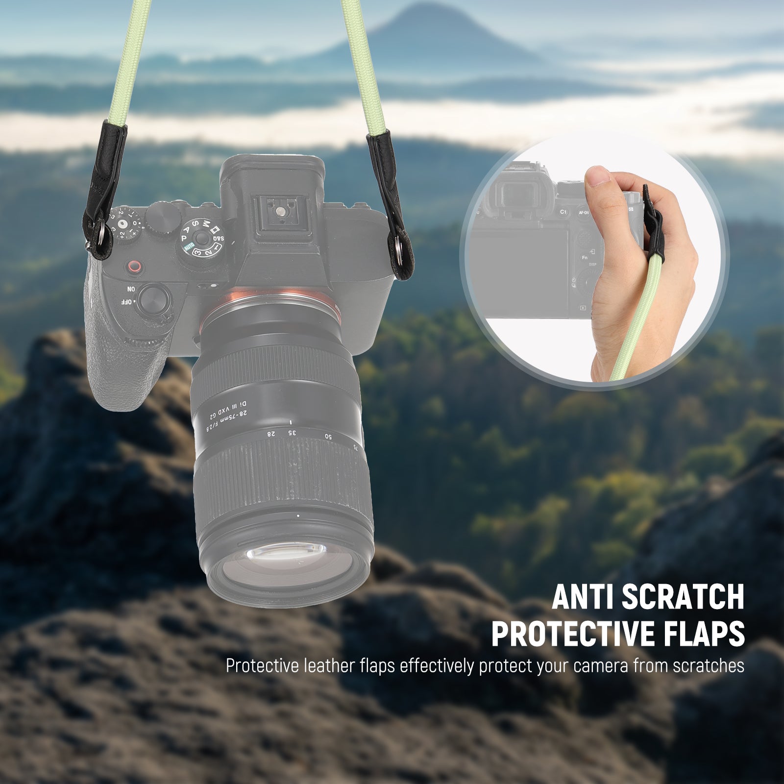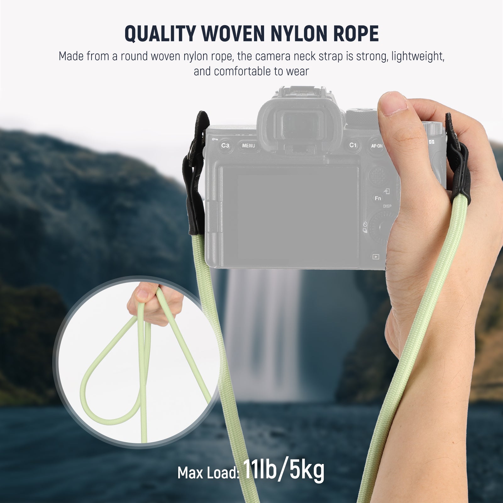 - Corda in nylon intrecciata resistente : realizzata in una corda in nylon intrecciata rotonda, la tracolla per fotocamera è resistente, leggera e comoda da indossare.