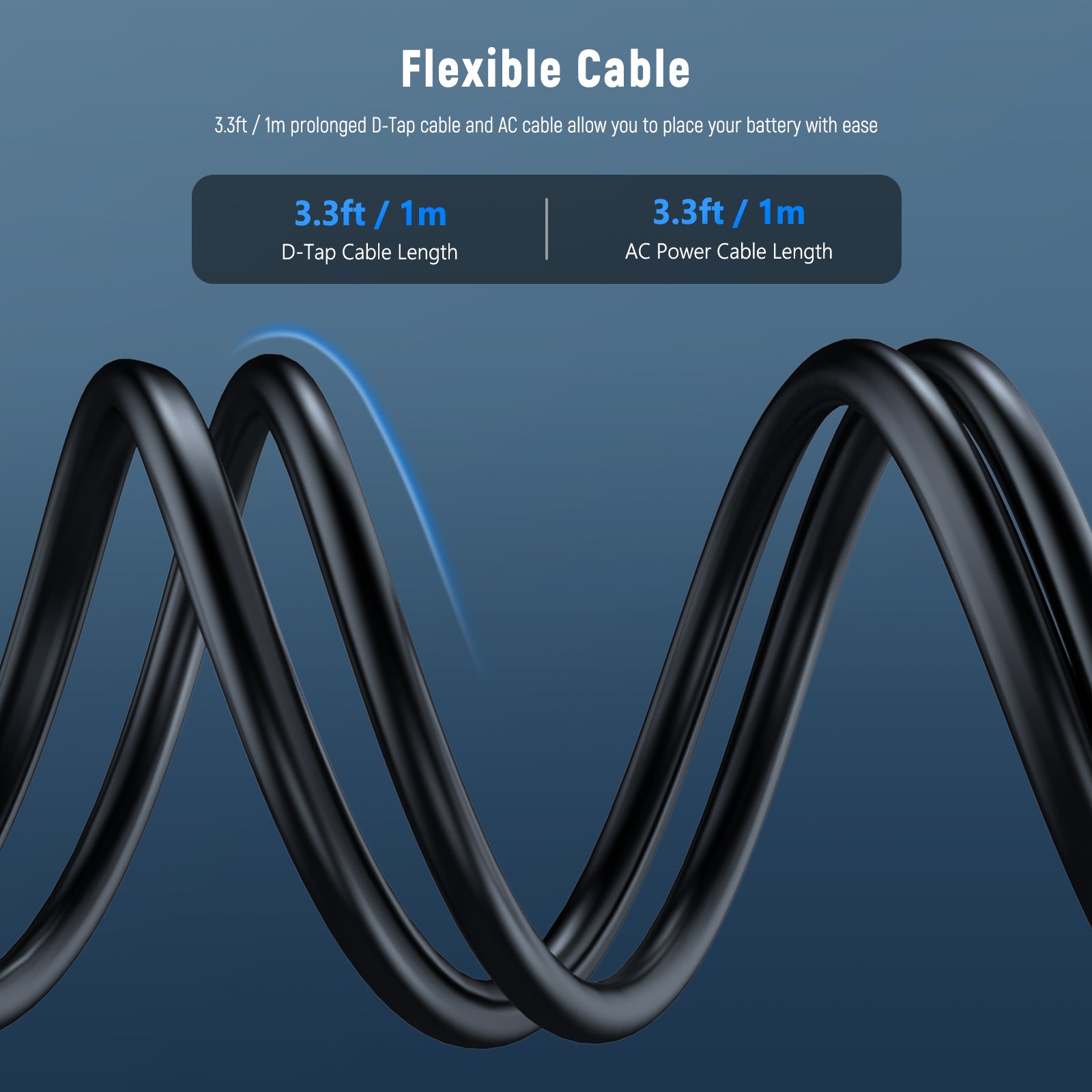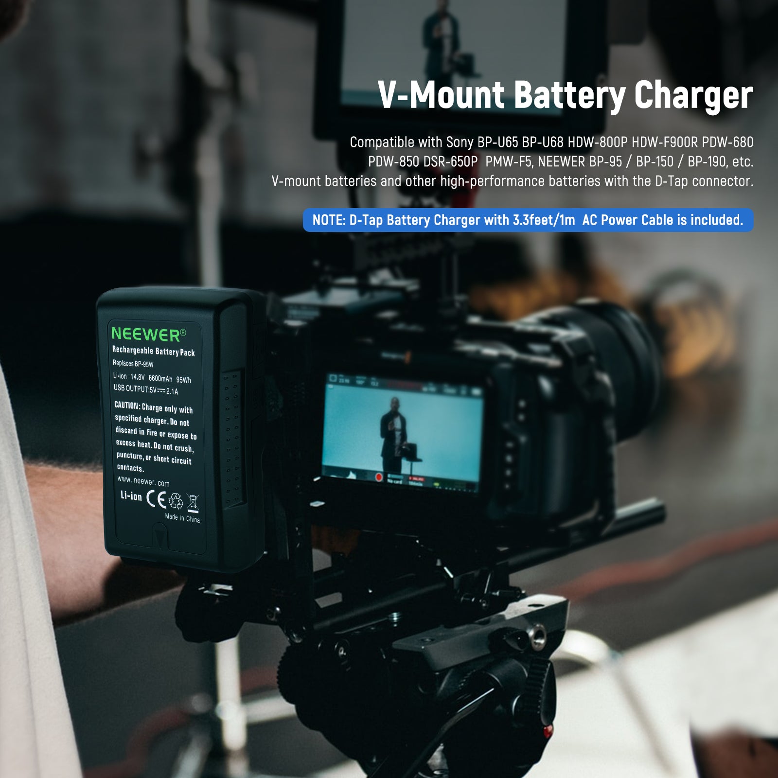 - Caricabatterie con cavo D-Tap da 3,3 piedi - Con uscita da 16,8 V 2 A 33,6 W, carica una batteria V Lock da 15000 mAh entro 10 ore. L'ampio cavo D-Tap da 3,3 piedi/1 m e il cavo CA consentono di posizionare/configurare la batteria con facilità