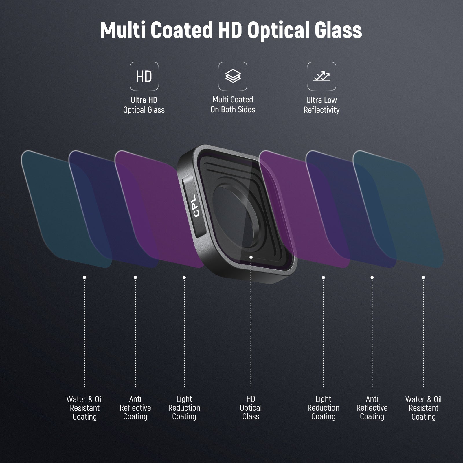 - Vetro ottico HD multistrato - Utilizzando la tecnologia di rivestimento premium multistrato, il filtro polarizzante riduce efficacemente i riflessi dell'obiettivo ed evita la vignettatura, garantendo così chiarezza e dettaglio nell'effetto di ripresa. Il vetro ottico HD offre chiarezza, nitidezza e precisione del colore eccezionali. Offre un'elevata trasmissione della luce, riduce i riflessi ed è sia durevole che facile da pulire, garantendo risultati di qualità costantemente elevata