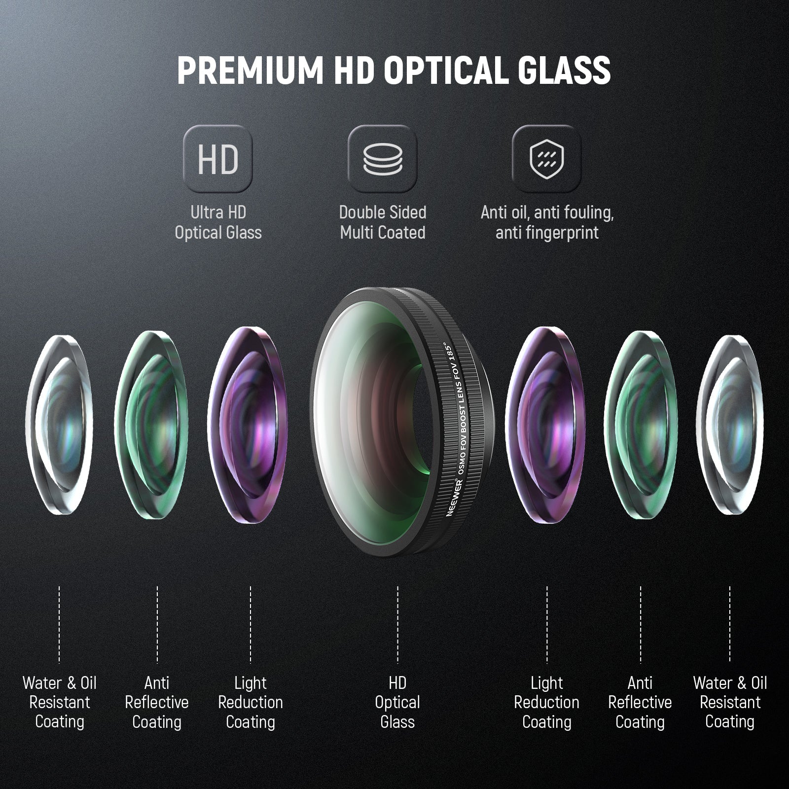 - Vetro ottico HD Premium : realizzato con vetro ottico ad alta definizione, l'obiettivo Boost per Action 5 Pro garantisce immagini chiare, nitide e vivaci, conferendo ai tuoi filmati una nitidezza e un dettaglio eccezionali, anche nelle scene d'azione in rapido movimento.