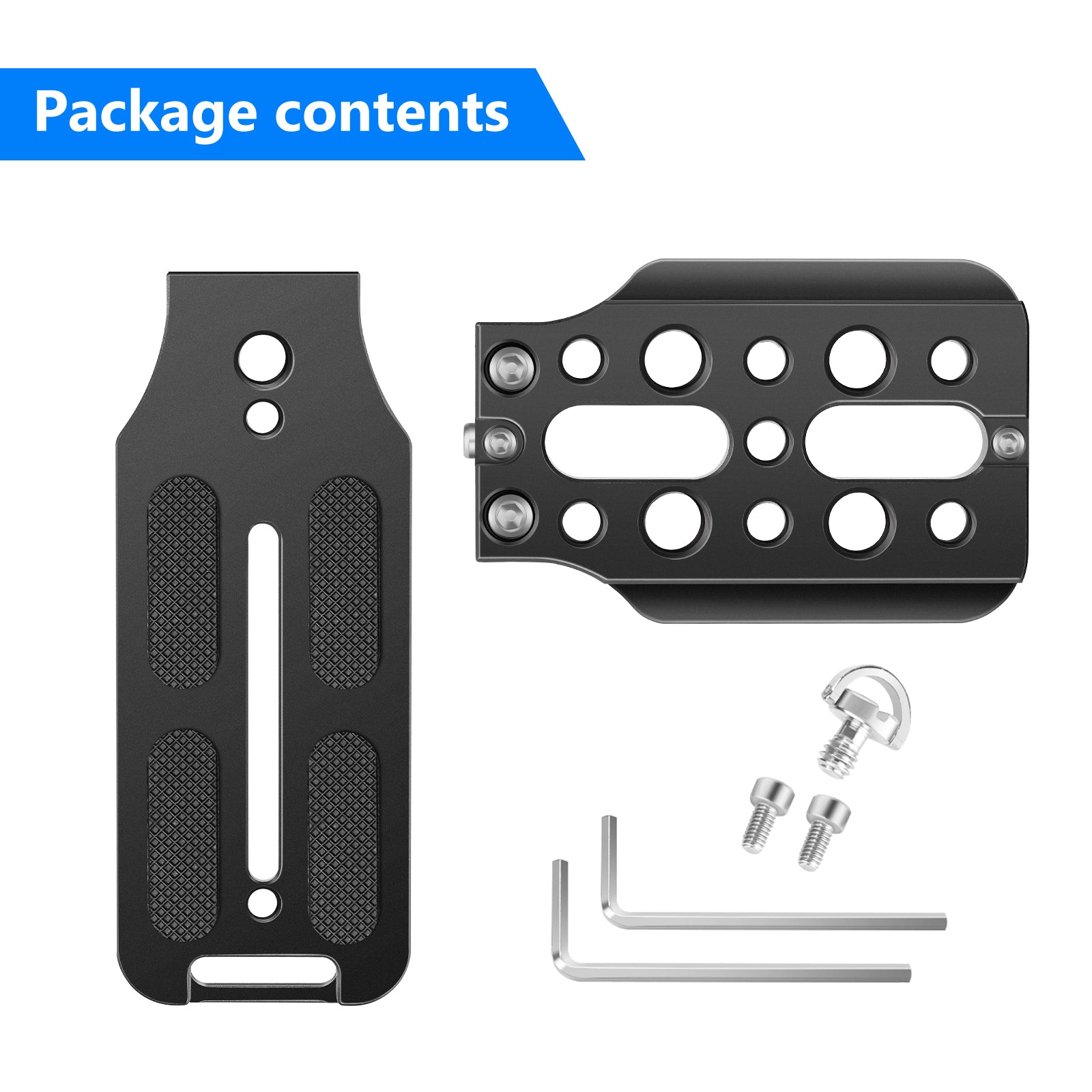 - MATERIALE RESISTENTE : Realizzato in lega di alluminio aeronautico con tecnica CNC ad alta precisione, resistente alla corrosione e super durevole, ciascun lato delle piastre in 2 pezzi è dotato di un chiodo antiscivolo che può funzionare con le scanalature a forma di U del morsetto e proteggere la fotocamera