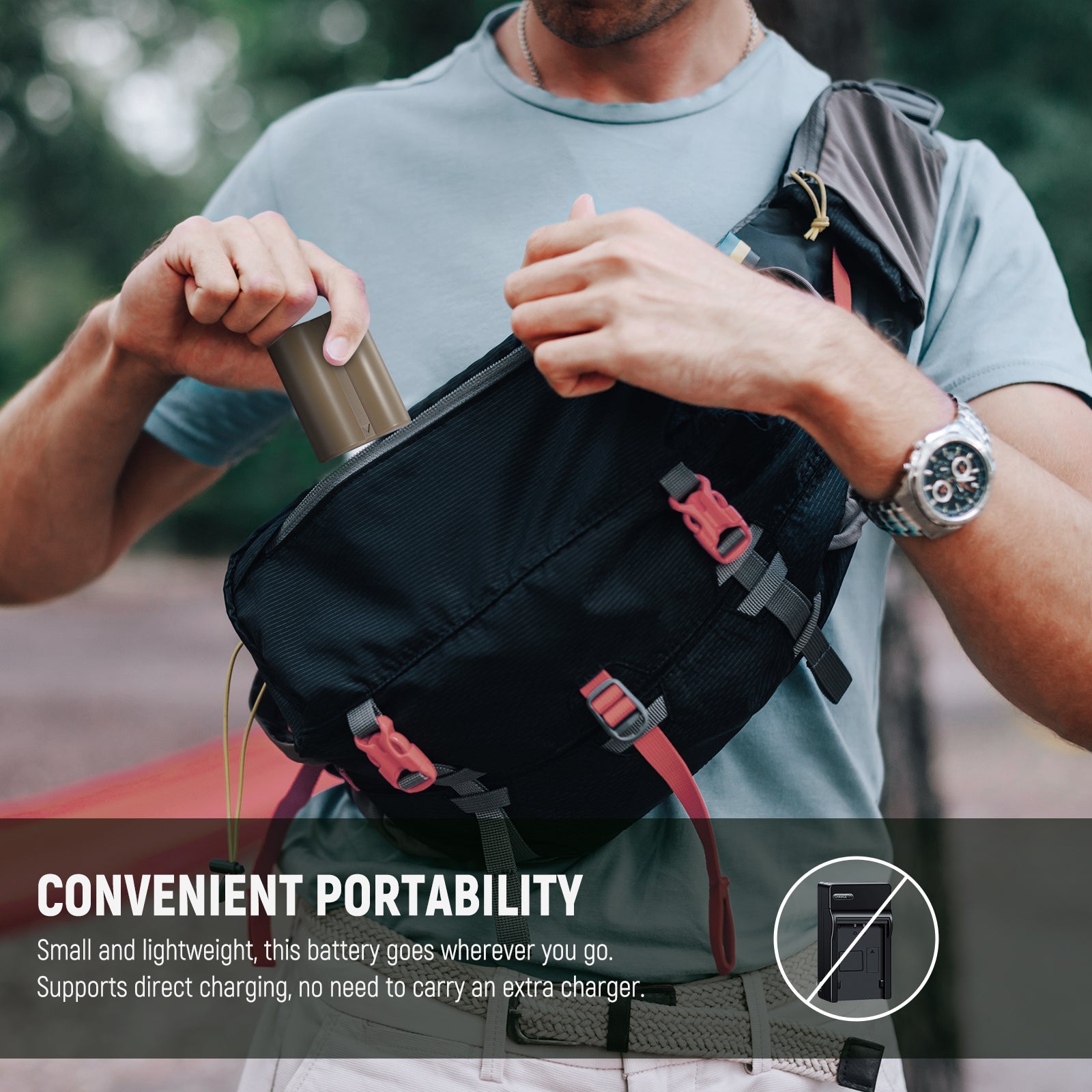 - Porta di ricarica USB di tipo C : dotata di una porta di ricarica USB di tipo C, questa batteria non necessita di un caricabatterie esterno. Tutto ciò di cui hai bisogno per la ricarica è un cavo USB di tipo C (incluso) e un alimentatore USB da 5 V (non incluso)