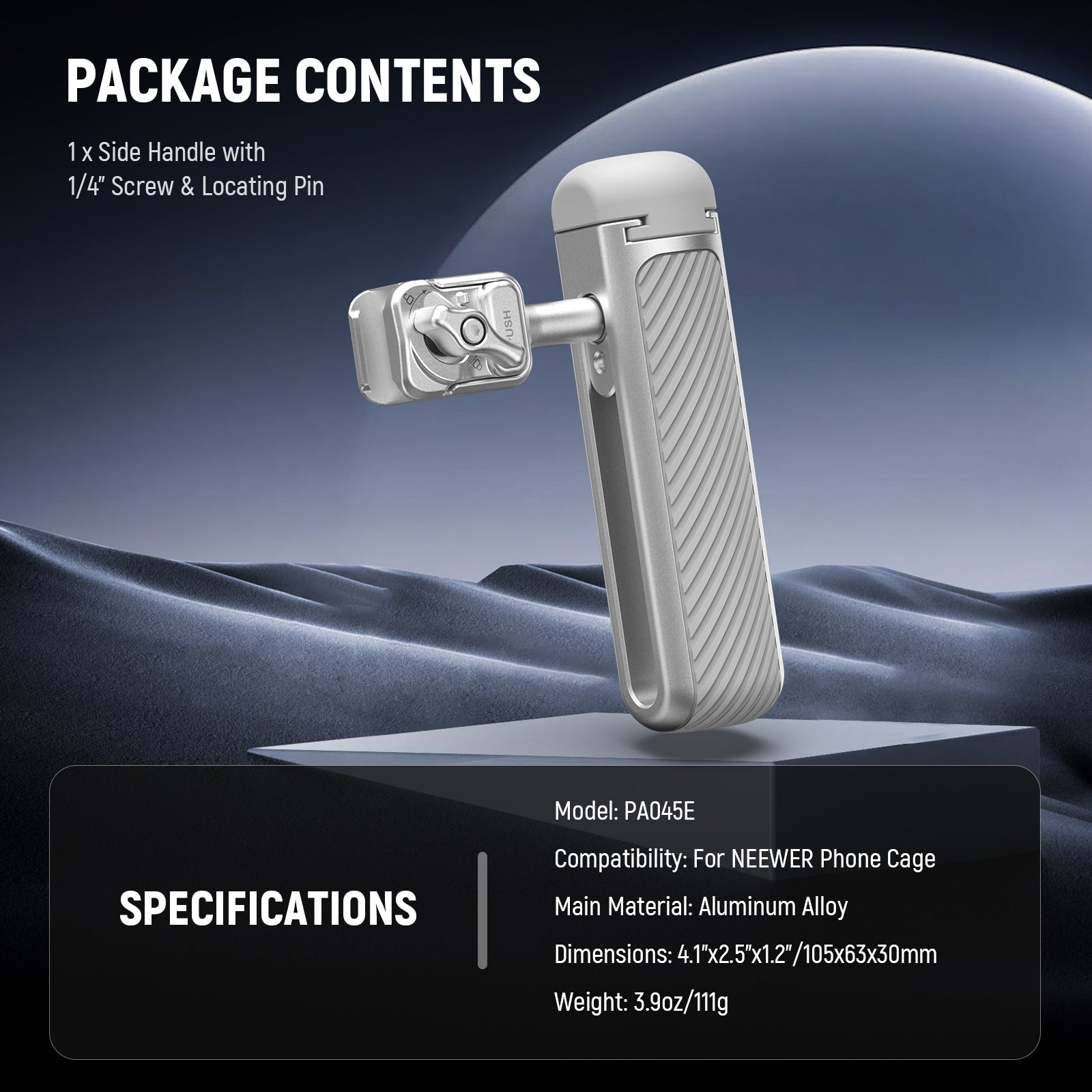 - Per gabbie per telefoni di seconda generazione NEEWER - Questa maniglia laterale con otturatore Bluetooth è progettata per le gabbie per telefoni NEEWER con slot di montaggio a morsetto a sgancio rapido, tra cui la gabbia per telefono di seconda generazione PA043/PA044 per 15 Pro/15 Pro Max e la gabbia per video rig PA042 per Galaxy S24 Ultra