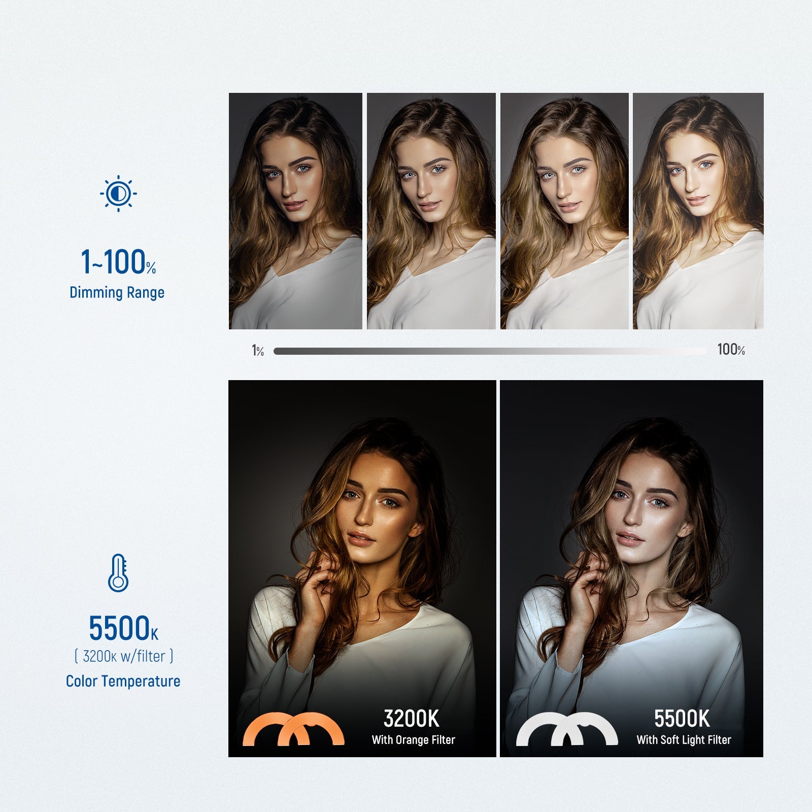 - Ammorbidisce la fonte di luce e migliora il tono della pelle nella fotografia di ritratto. Aggiungi colori drammatici agli sfondi o a parti selezionate di una scena per effetti artistici. Fornisci una gamma di attenuazione della luce regolabile come preferisci, illumina la tua bellezza in diversi toni e occasioni.