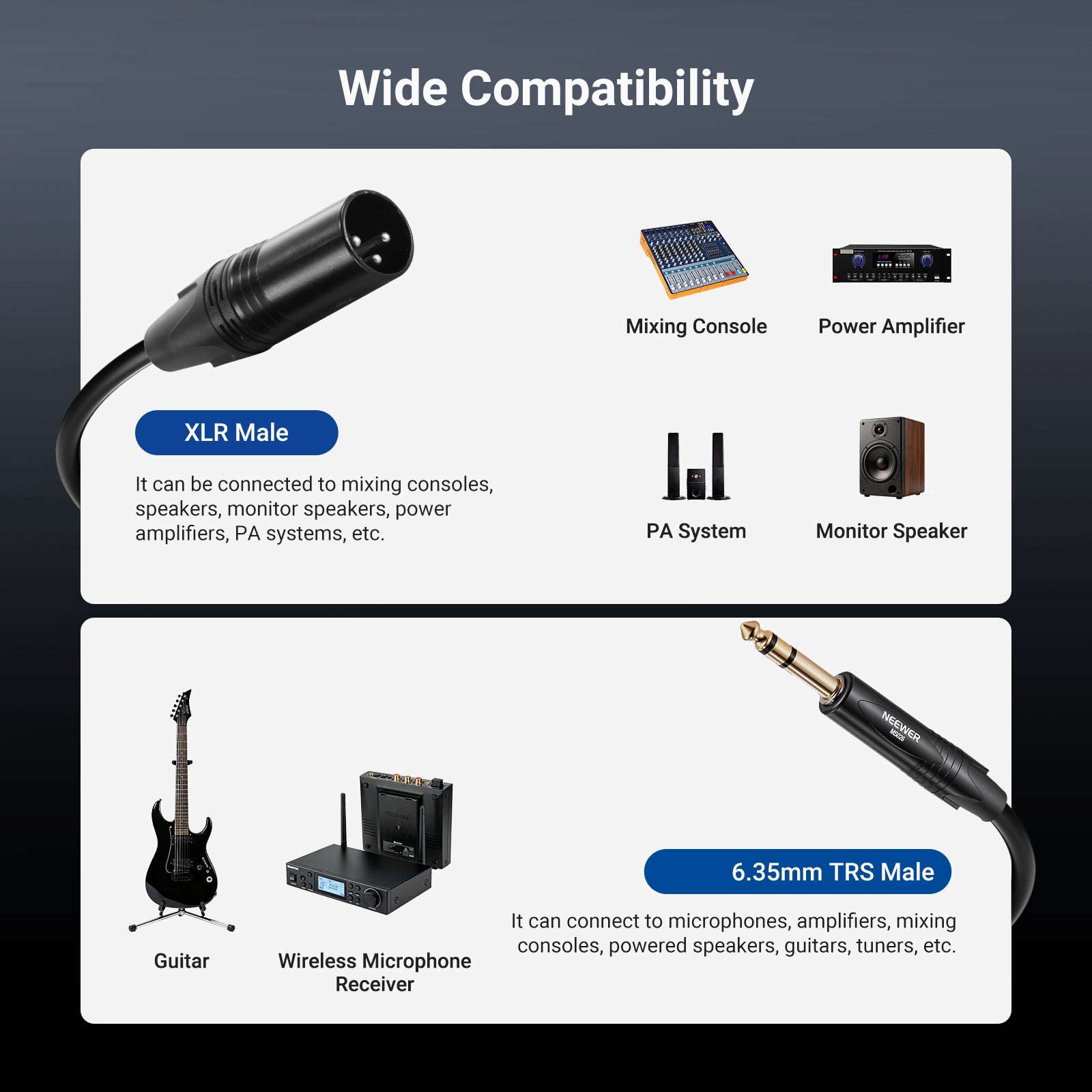 - Versatile Use- The 3ft trs to xlr cable is compatible with microphones, amplifiers, sound boxes, mixers, tuners, and more, offering reliable connections across your professional audio equipment