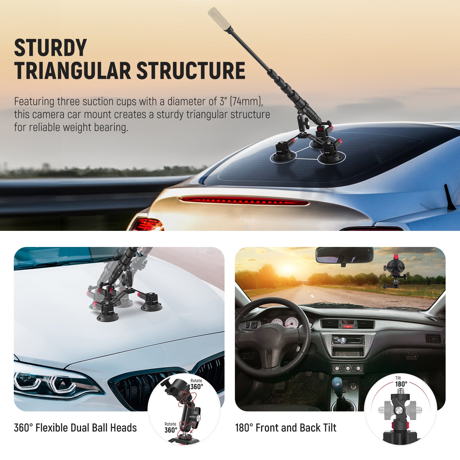 NEEWER CA065 Supporto per Auto a Tripla Ventosa