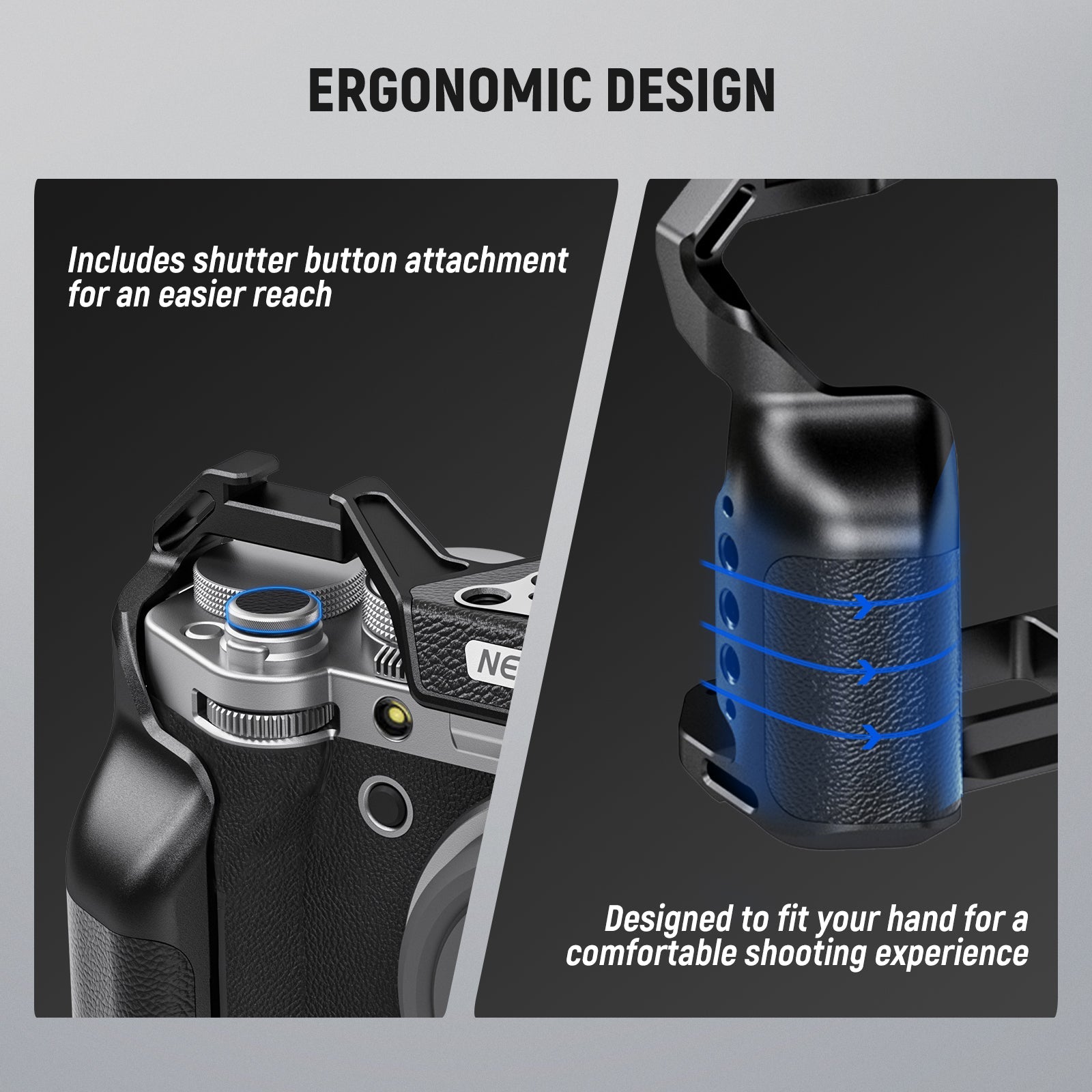 - Gabbia per fotocamera X-T5 sottile e aderente - NEEWER CA014 è compatibile con la fotocamera Fujifilm X-T5. Sottile e aderente, questa gabbia può proteggere adeguatamente la fotocamera e migliorare le riprese a mano libera senza aggiungere ingombro. Il design cavo garantisce l'assenza totale di blocco di pulsanti, slot per schede, schermo e coperchio della batteria e include anche un attacco per il pulsante di scatto per un accesso più facile