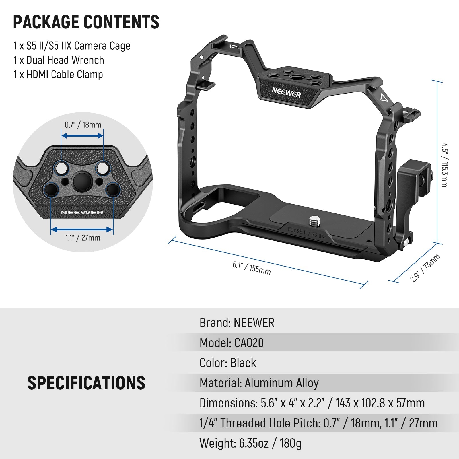 NEEWER CA020/CA056 Gabbia Fotocamera Per Panasonic S5 II / S5 IIX / G9 II