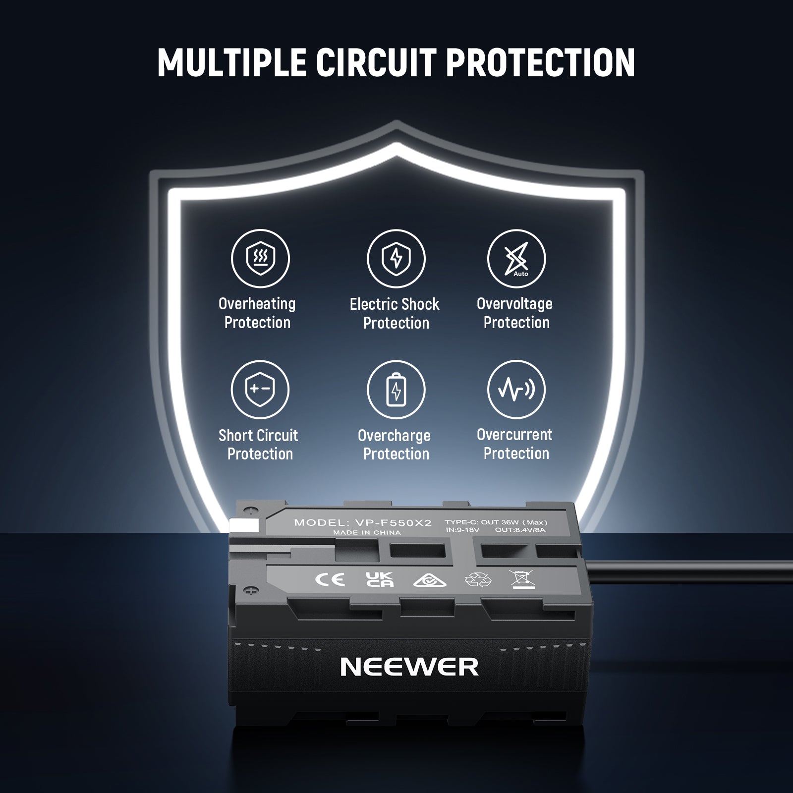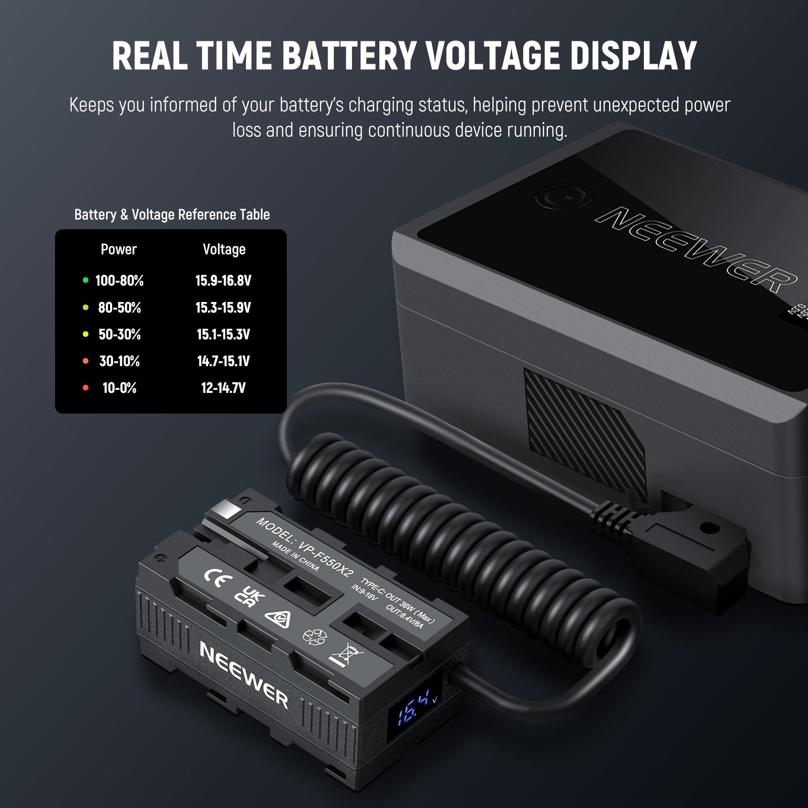 NEEWER VP-F550X2 Dual Sided Dummy Battery Adapter with Display