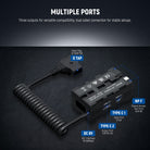 - Multiple Power Options- Connect via the D TAP adapter (12-16.8V, 10A) or the Type C input (9-12V) to enable both the NP-F output (8.4V, 8A shared across two ports) and USB C output (PD fast charging at 5V 3A/9V 3A/12V 3A), compatible with Sony NP-F970 NP-F750 NP-F550 batteries and their replacements. The Type C input supports V mount batteries and battery packs. The Type C output can charge your phones. Note: Cannot power a camera directly as it is not decoded