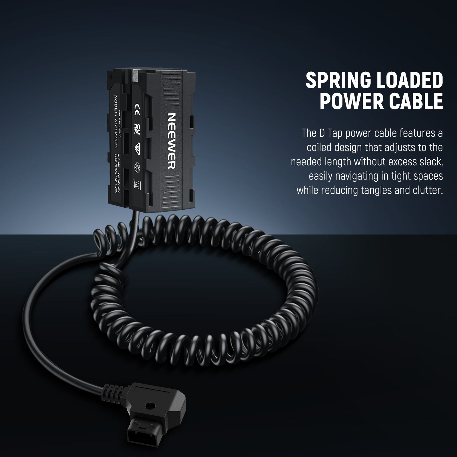 - Spring Loaded Power Cable- The D TAP power cable comes with a coiled design that helps adjust the cable length as needed without creating excess slack, easily navigate in tight spaces and reduces tangling and clutter, keeping a clean and organized workspace