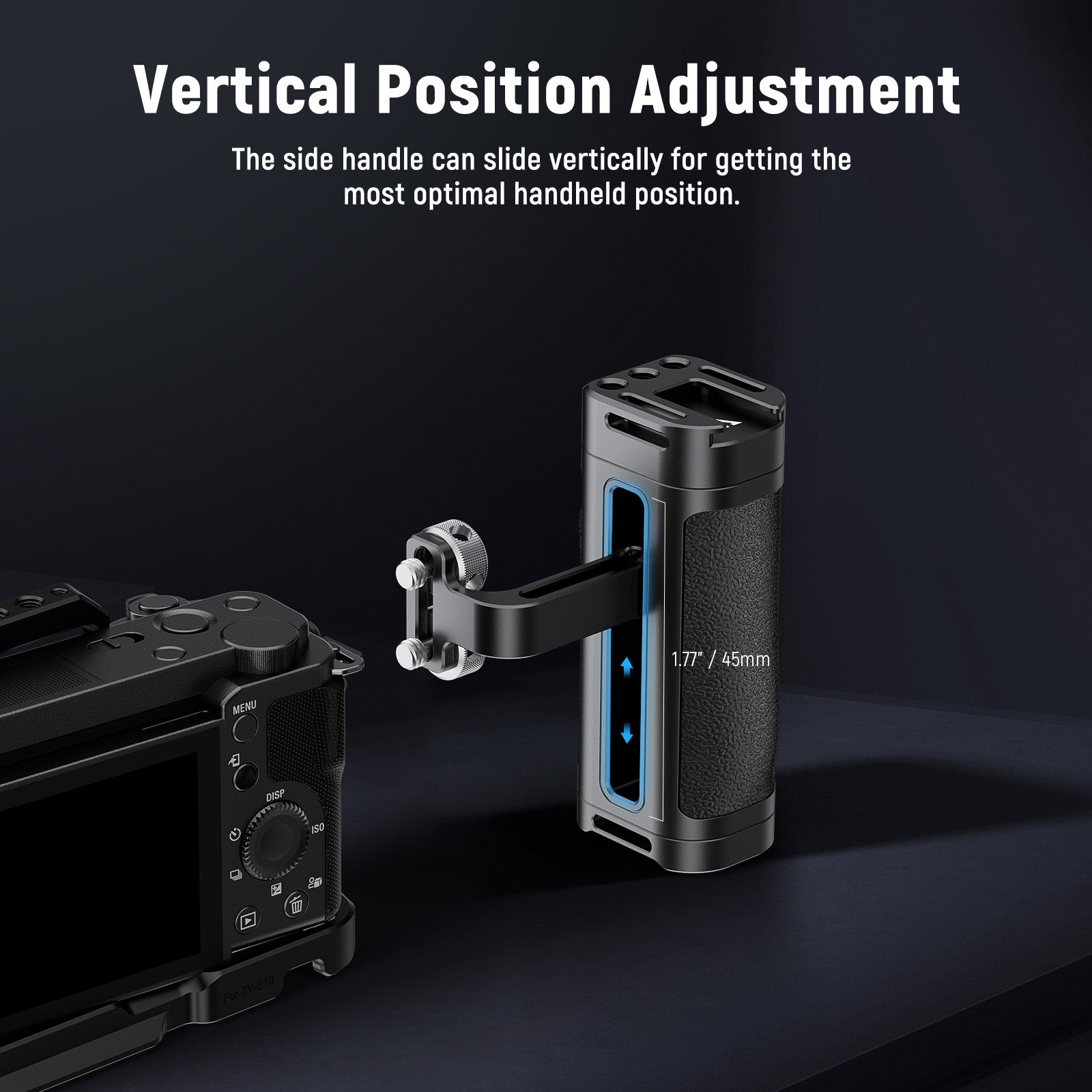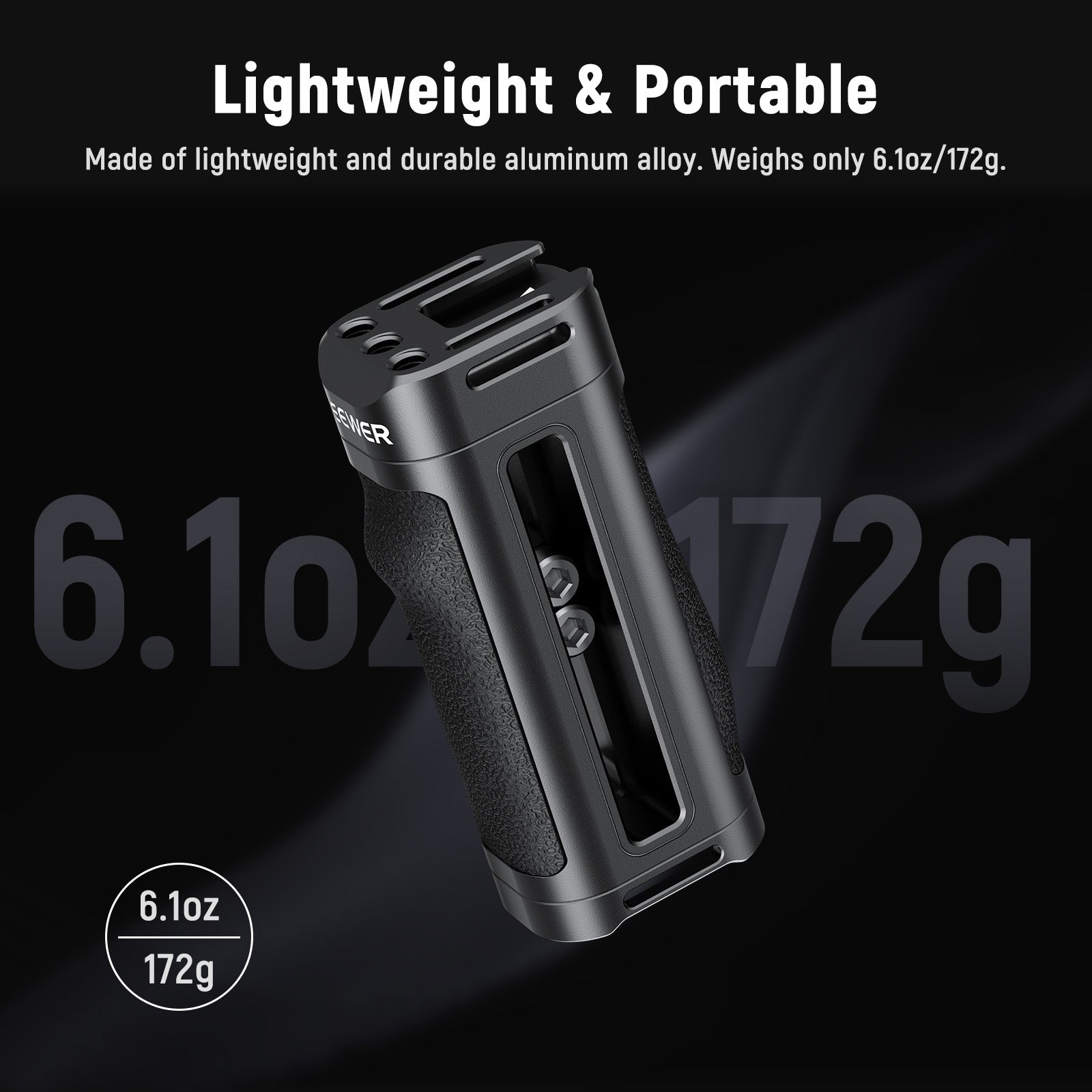 - Adatto per mano sinistra/destra - Progettato per il funzionamento con la mano sinistra e destra, il connettore della maniglia può essere staccato e installato su entrambi i lati della gabbia della fotocamera. Include anche uno slot per cordino per prevenire le cadute (cordino venduto separatamente)